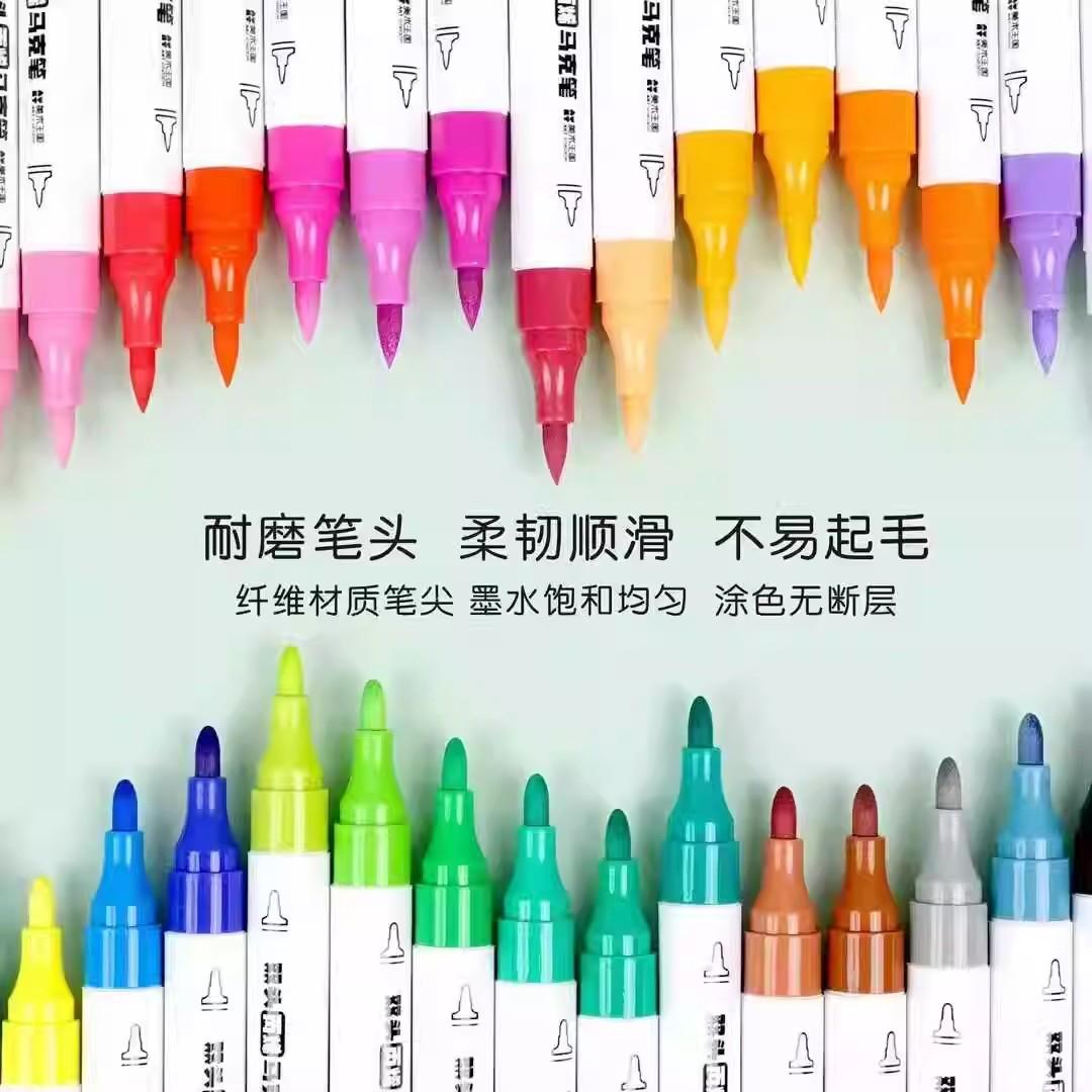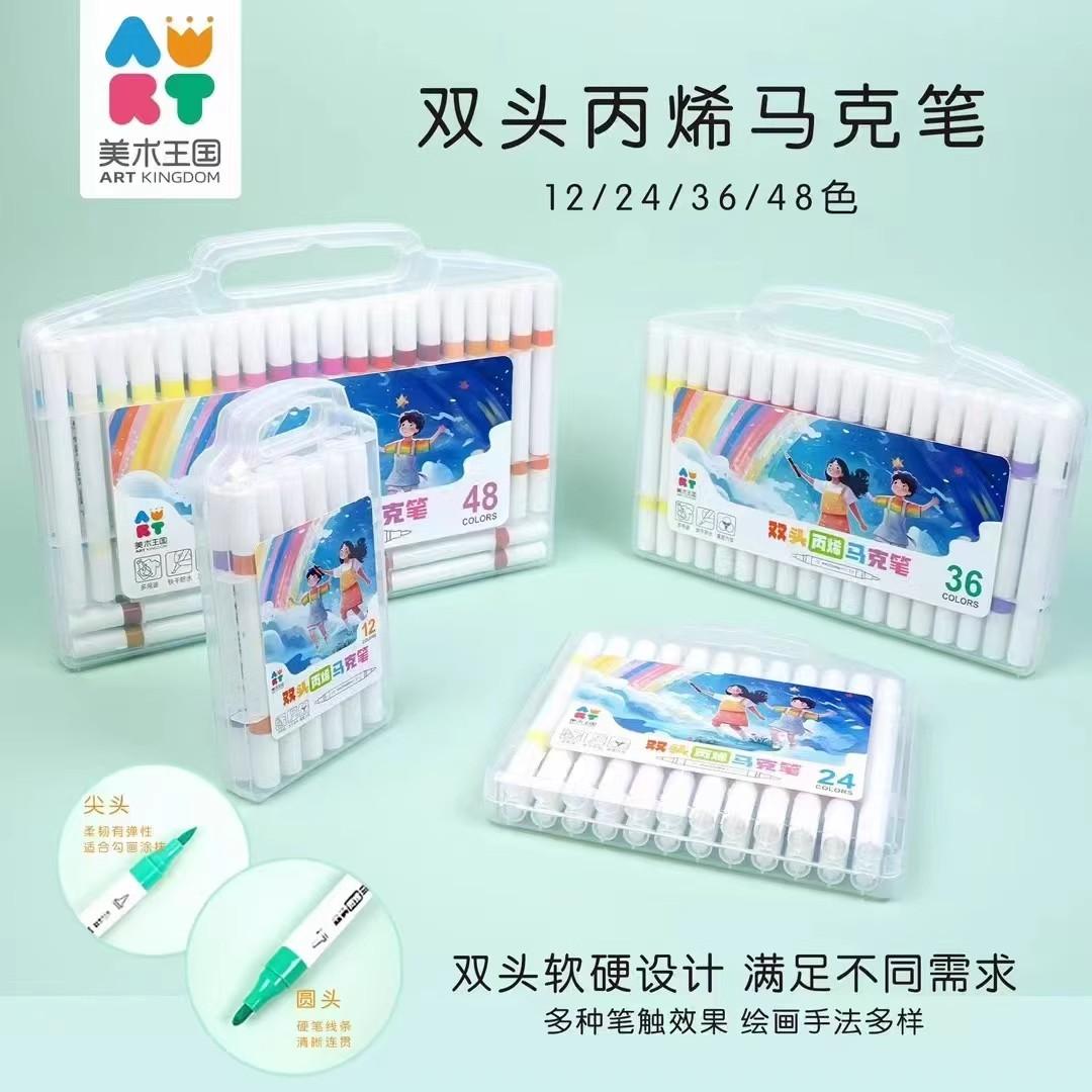 美术王国丙烯马克笔双头学生绘画笔水性不透纸可叠色覆盖率好包邮