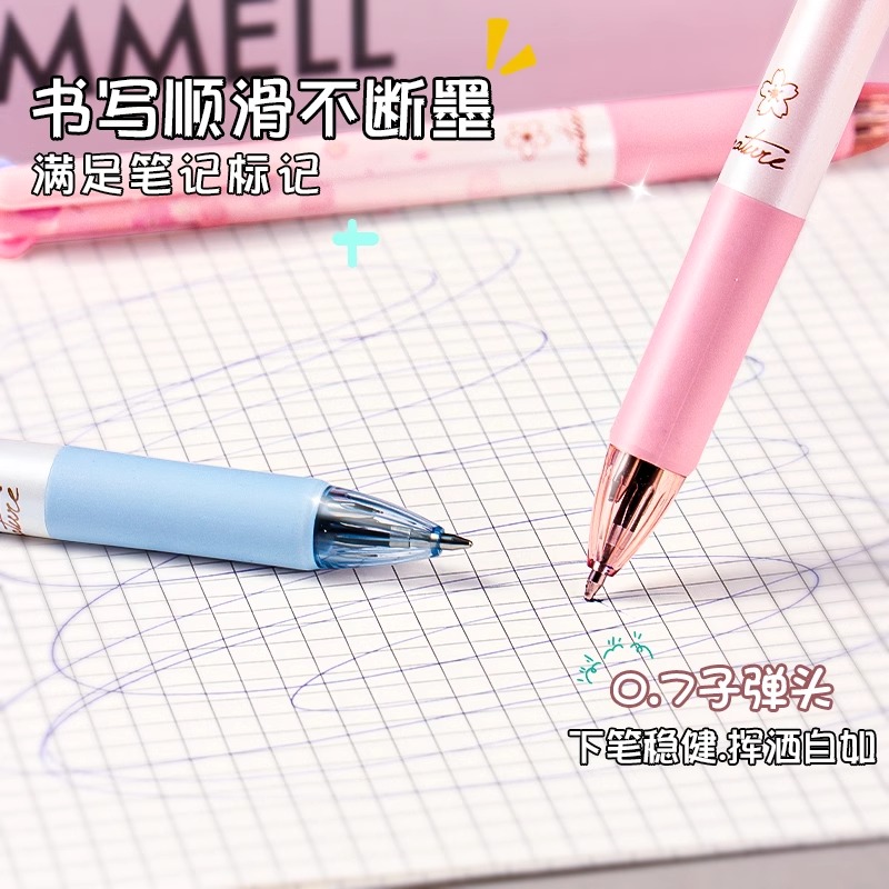 得力四色圆珠笔按动式多色合一按压式0.7彩色油性笔蓝红色高颜值标记笔多功能学生签字做笔记专用批发中性笔