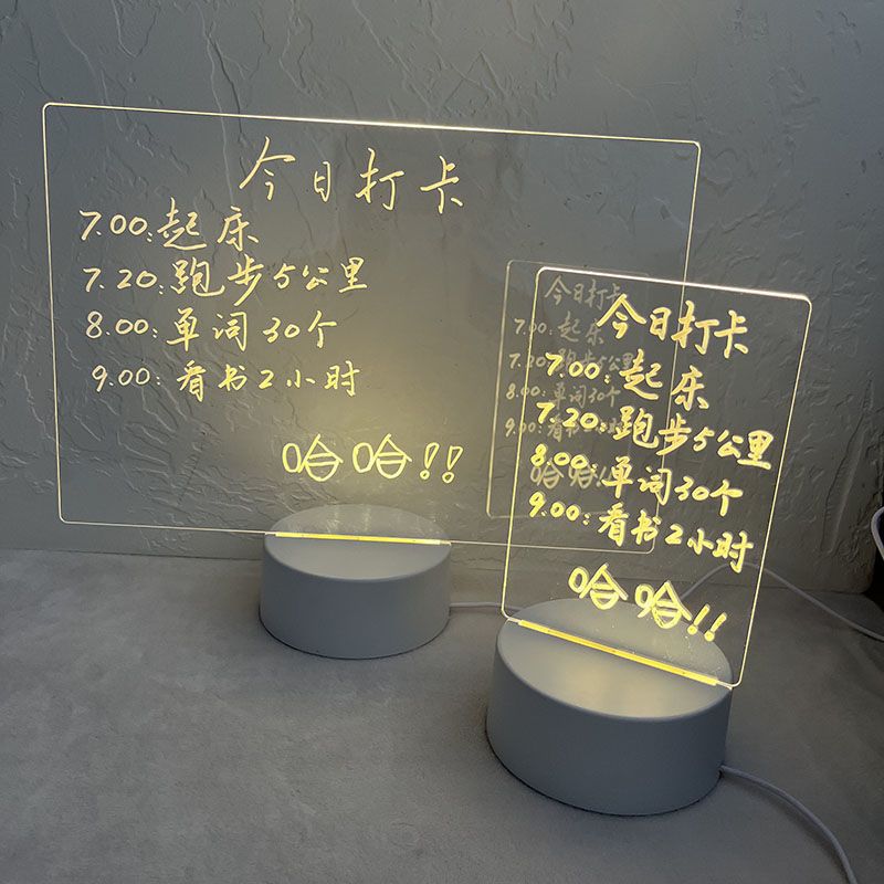 可擦led发光写字板亚克力透明记事板带夜灯书写留言备忘录牌