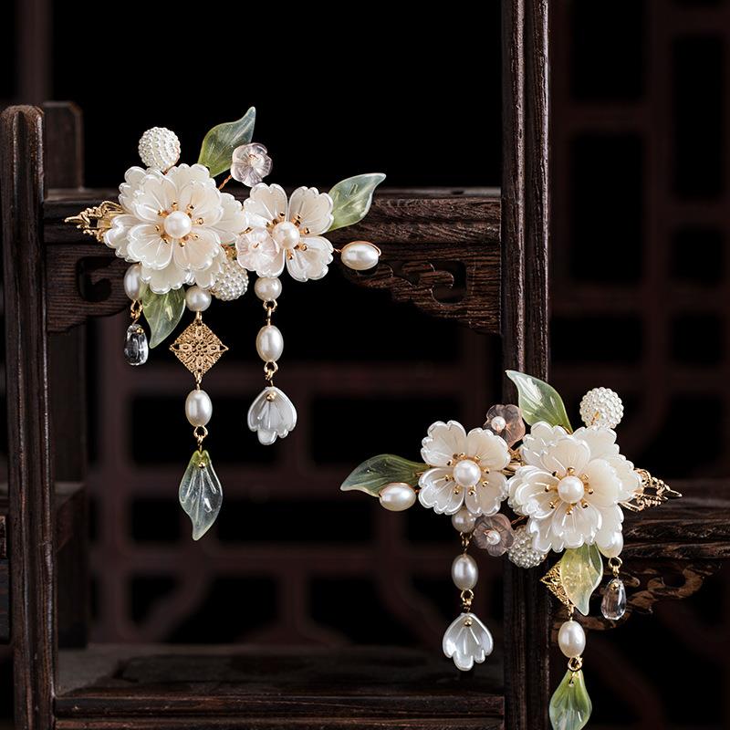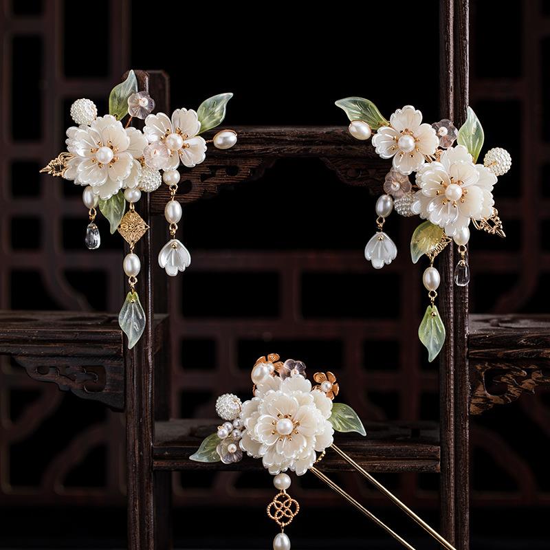 山茶花汉服头饰套装步摇发簪古风超仙发冠古装发夹簪子发饰新中式