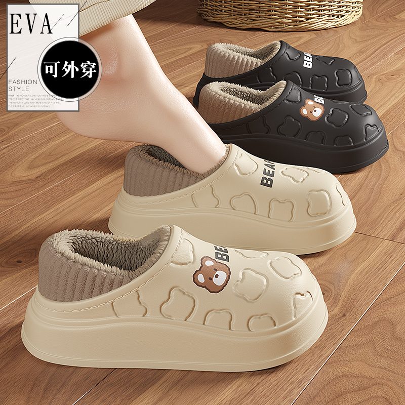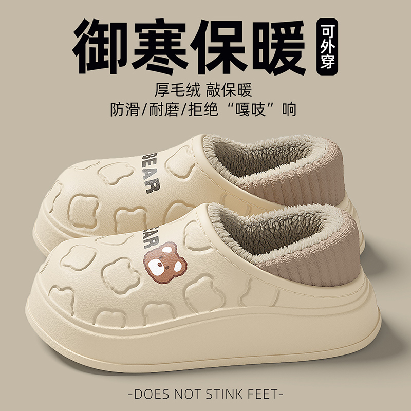 防水卡通棉拖鞋女士冬2025新款包跟室内家居防滑保暖加绒亲子棉鞋