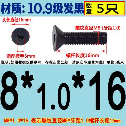 现货10.9级发黑细牙沉头内六角螺钉M8-1.0平头六方螺丝钉M10-1.25
