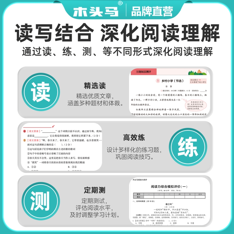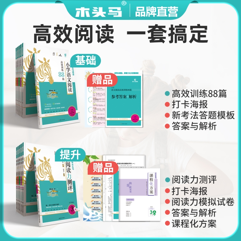 2026木头马阅读理解阅读力测评理解阅读一二年级下三四五六年级上册下册小学语文专项训练书高效训练88篇课外强化训练一百篇人教版