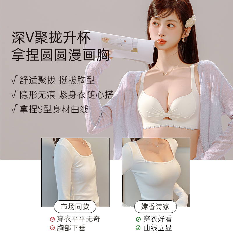 润微提拉内衣女夏薄款大胸显小无痕防下垂2025新款爆款粉底液文胸