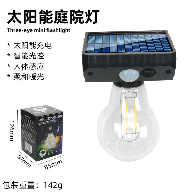 新款太阳能庭院灯人体感应超亮壁灯户外防水钨丝灯家用门口照明灯