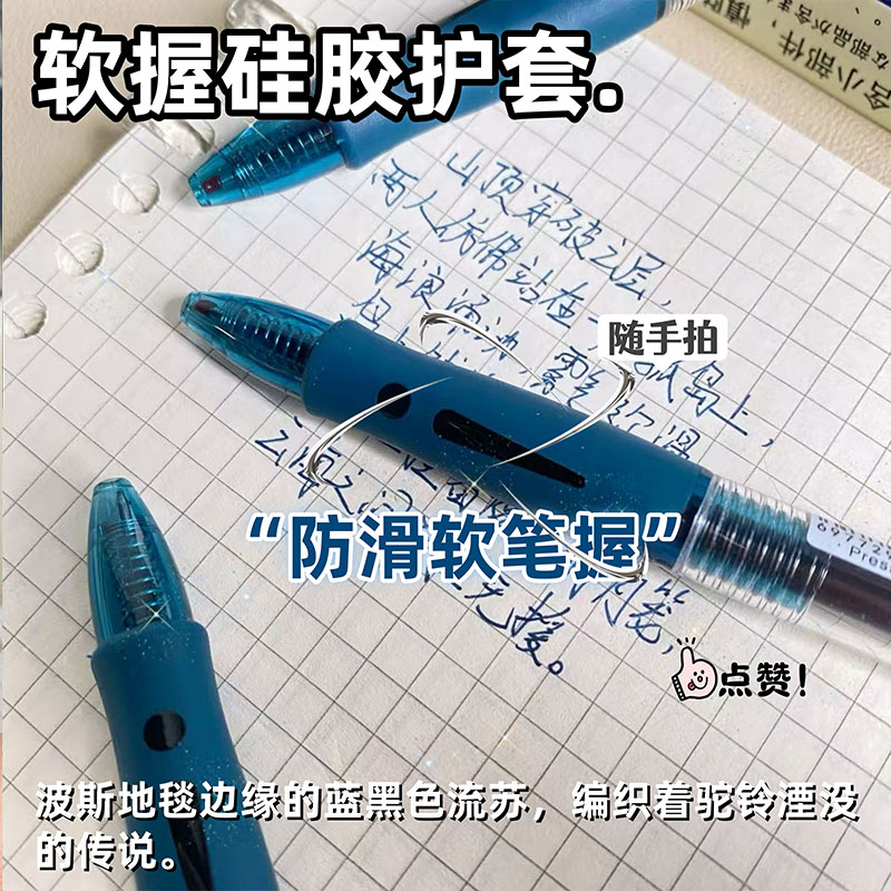 ST刷题笔高颜值按动中性笔圆珠笔黑色水笔小学生专用考试0.5速干碳素笔水性黑笔按压式做笔记签字笔非按斤卖