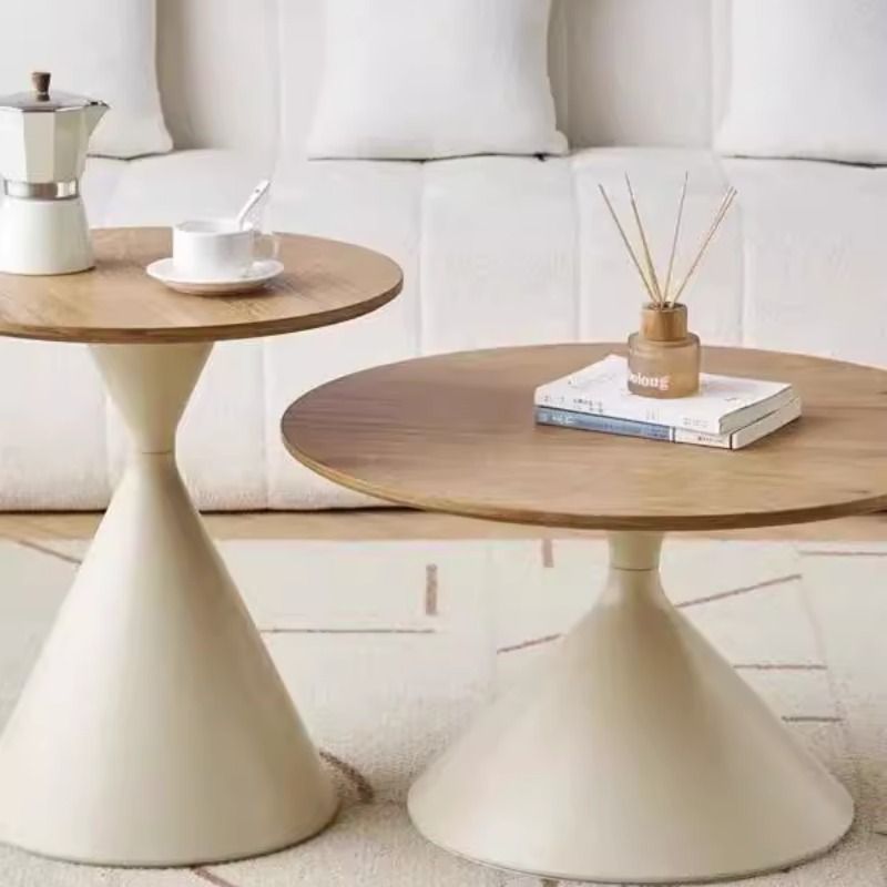 奶油风实木茶几家用极简客厅小户型现代简约高级感圆形可移动边几