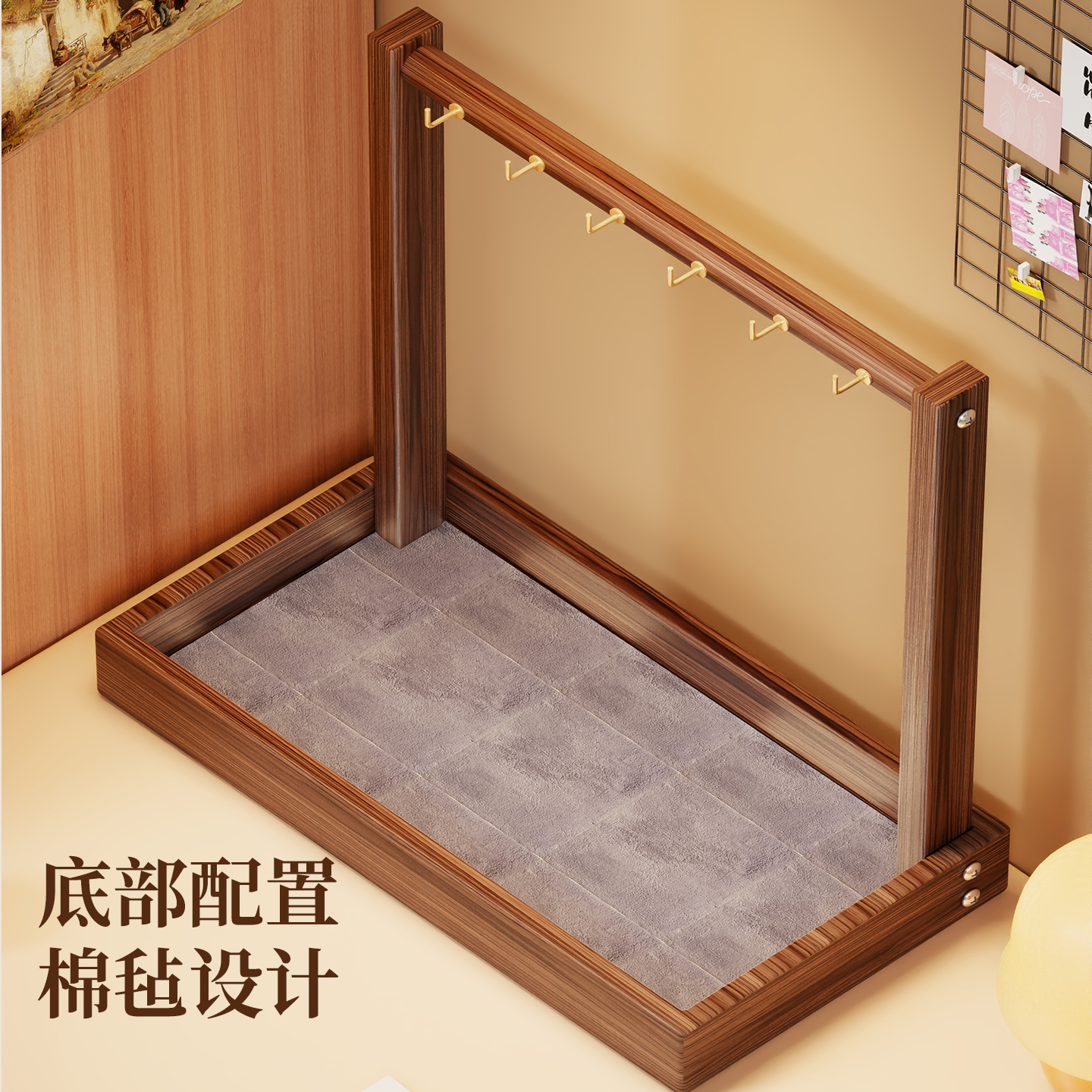 毛笔挂架学生宿舍桌面毛笔笔挂实木中式悬挂式挂毛笔的毛笔架子初学者桌面文房四宝摆件书法专用笔架托展示架