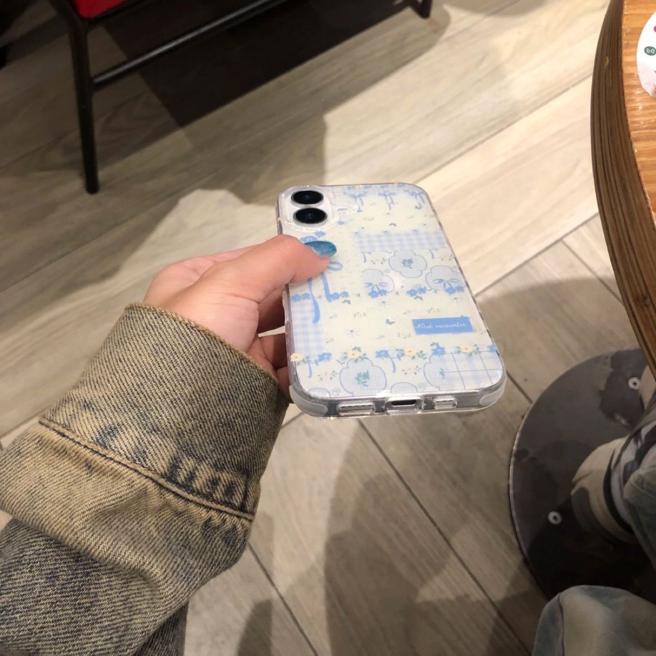 新款17ins春日田园蓝色格子花适用iPhone16proMax手机壳15简约14法式清新13少女12大孔双层11防摔xsmax保护壳