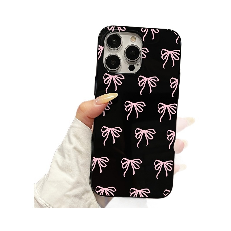 果冻黑粉色蝴蝶结适用苹果14 15 16promax手机壳7plus防摔11 12软