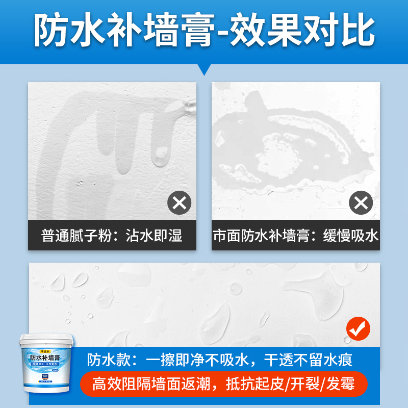 防水补墙膏家用墙面修补白色净味防霉反碱脱落掉皮墙体修复腻子膏