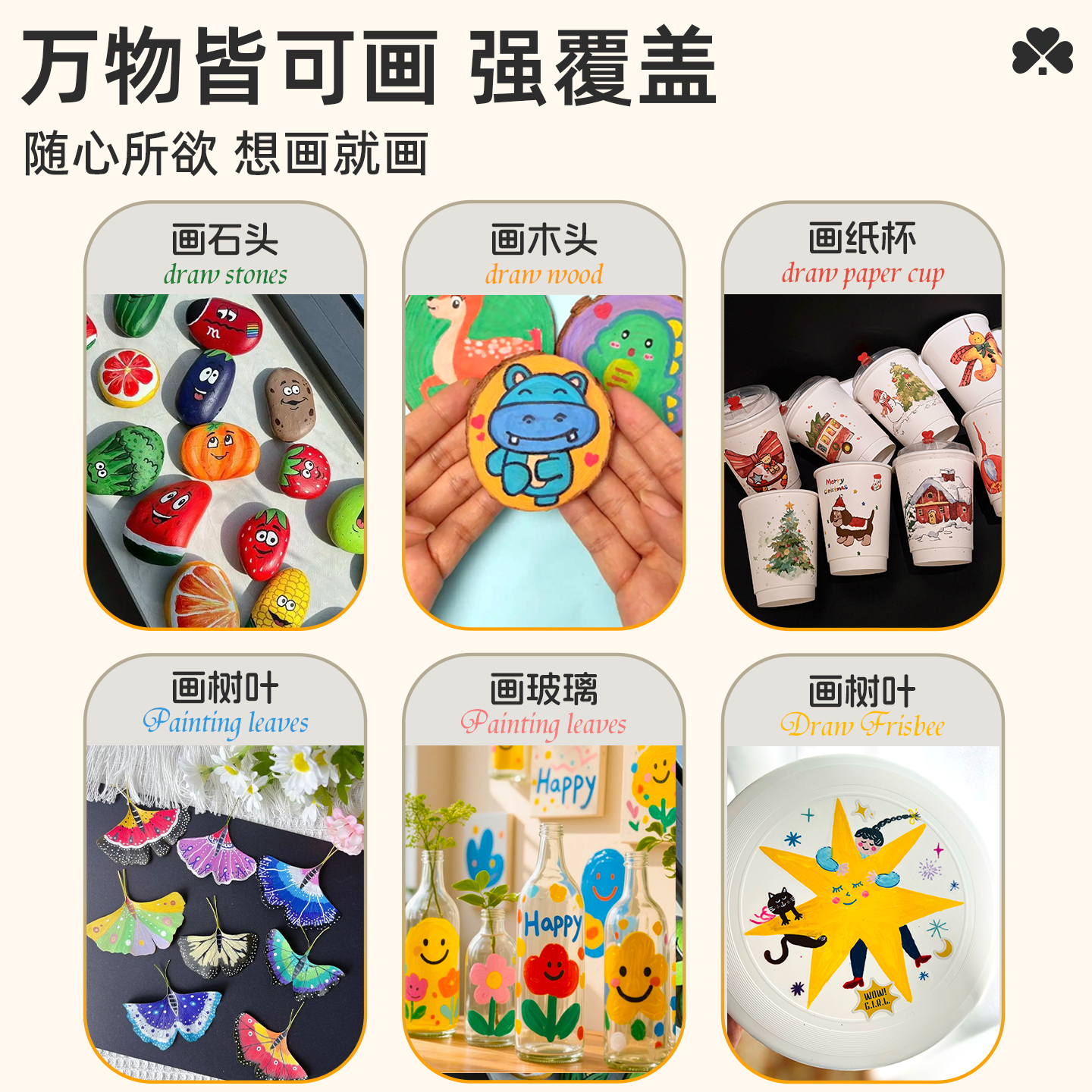60色48色大容量丙烯马克笔盒装儿童专用可叠色不透纸幼儿园学生版软头丙烯笔可水洗水性水彩笔小孩画画笔
