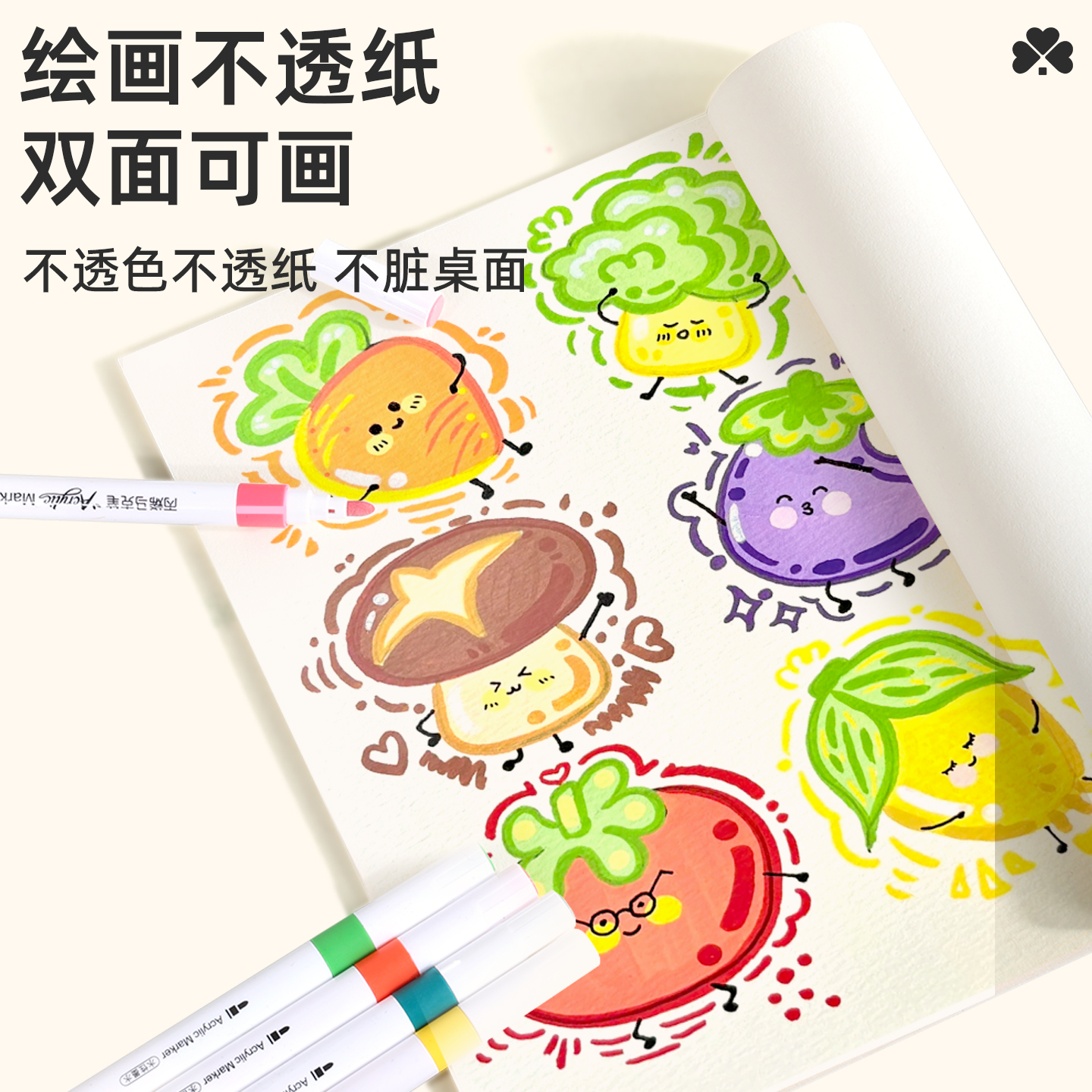 直液式丙烯马克笔软头美术专用画画笔双头儿童安全无毒可水洗学生水彩笔48色不透色可叠加白DIY涂鸦笔丙烯笔