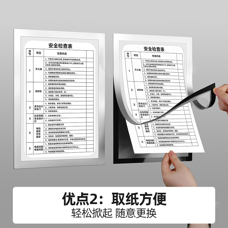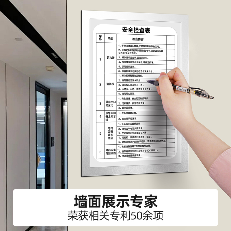 免打孔A4磁性封套胶套目视化管理可书写镂空墙贴消防卫生检查表文件袋记录卡卡套工厂车间巡场点检表文件夹