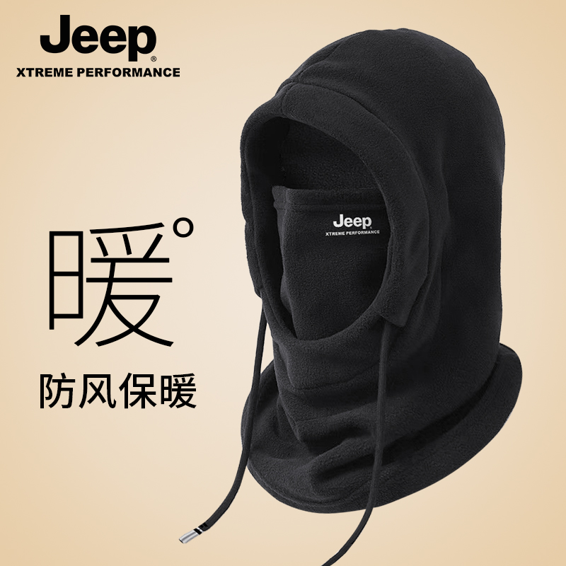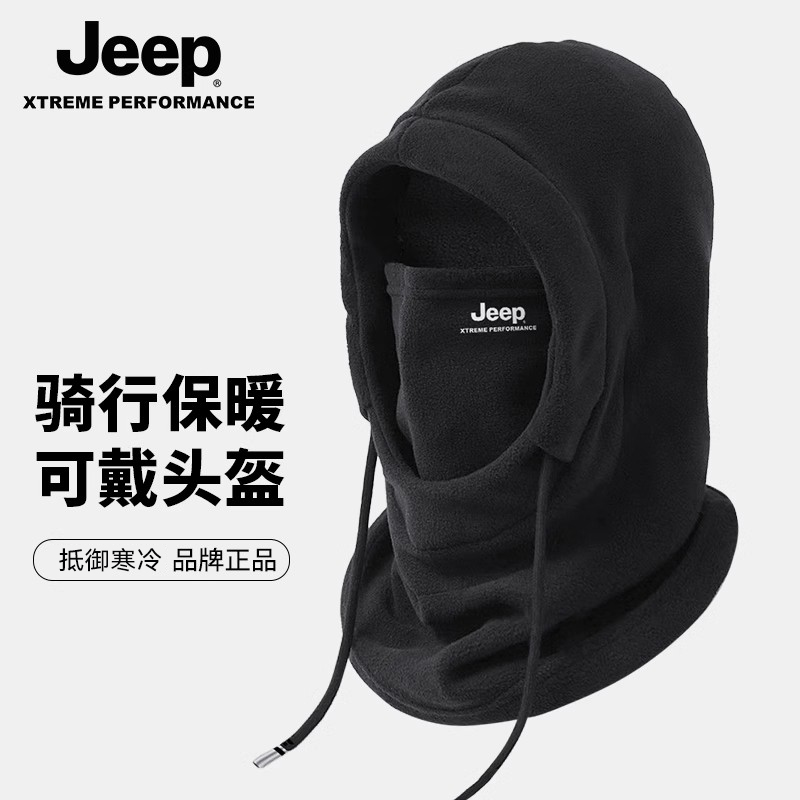 jeep吉普帽子围巾一体男士冬季骑车防风帽防寒保暖头套围脖面罩男