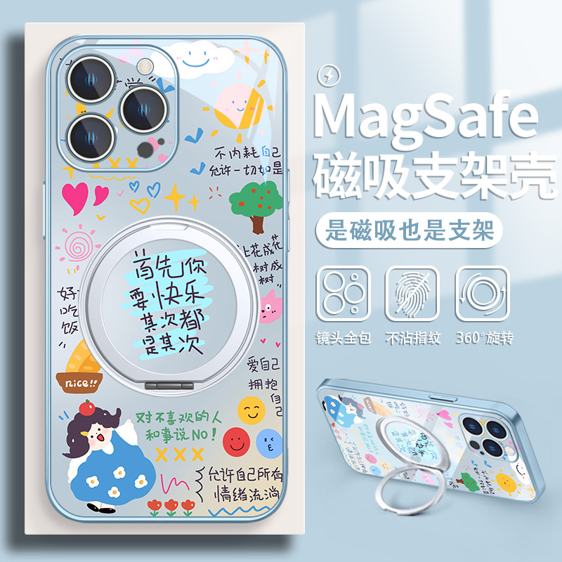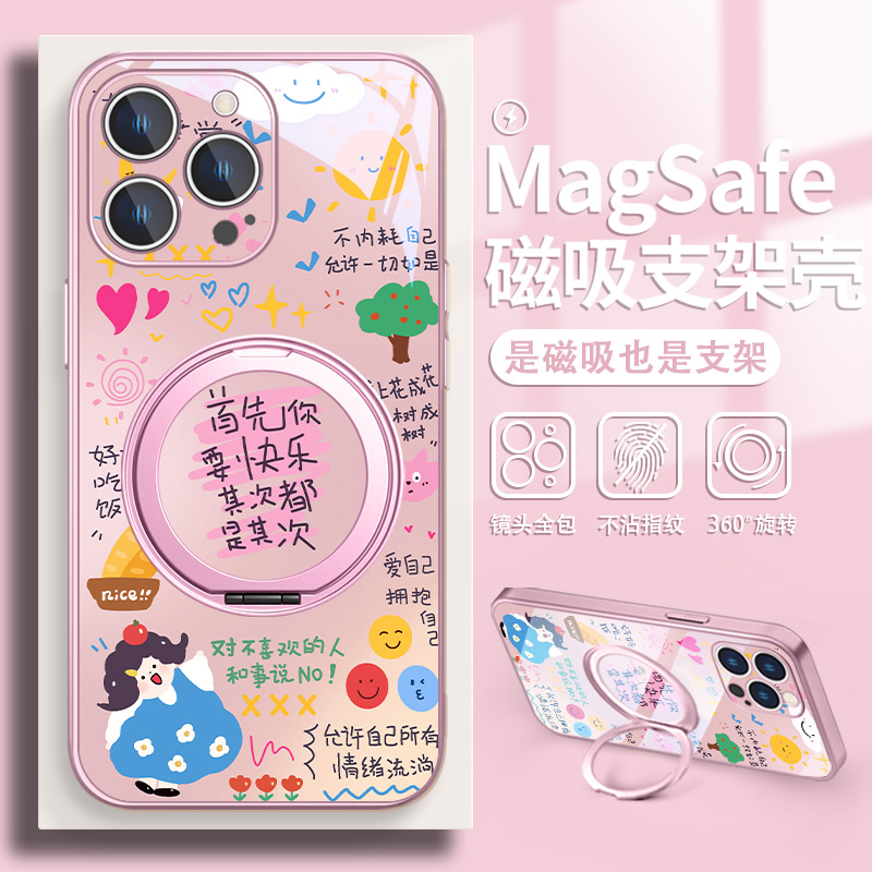 首先你要快乐适用苹果17手机壳16promax磁吸旋转支架iPhone15小众14plus可爱华为mate70好运mate60指环扣13女