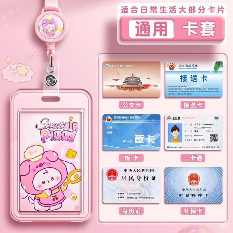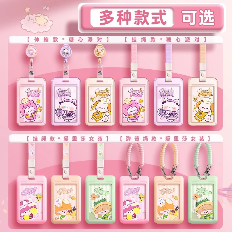 cute cardholder lanyard campus id bus card holder卡套带挂绳