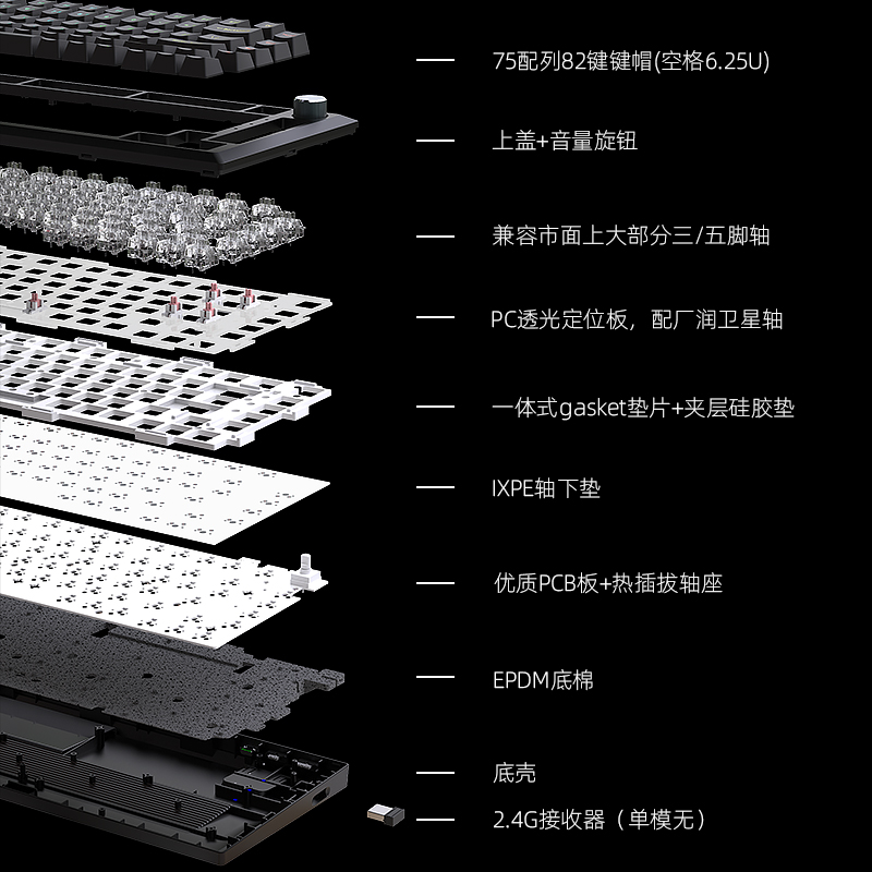 黑吉蛇DK75机械键盘RGB套件GASKET无线2.4G蓝牙有线三模下灯位DIY