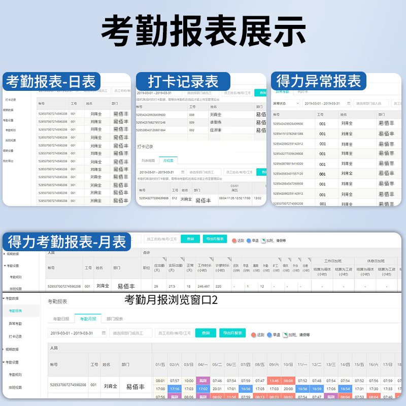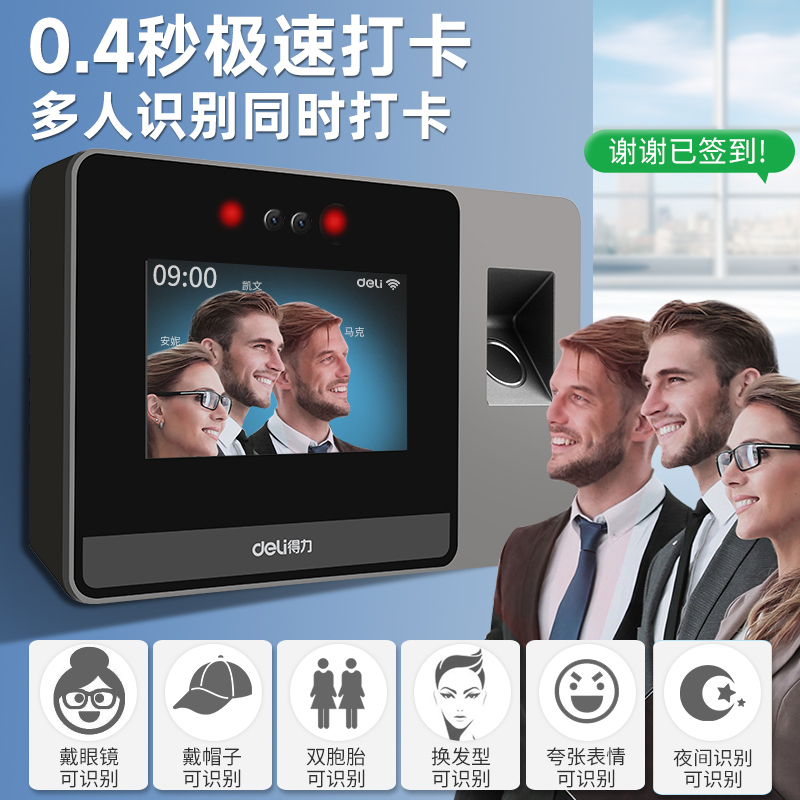 【无接触打卡更安全】得力人脸识别考勤机D5动态云智能脸部面部打卡机一体员工上下班管理D6刷脸考勤签到wifi