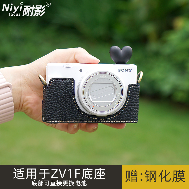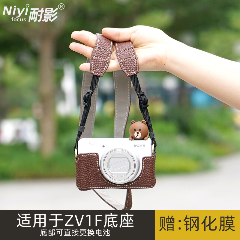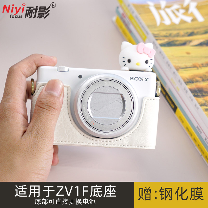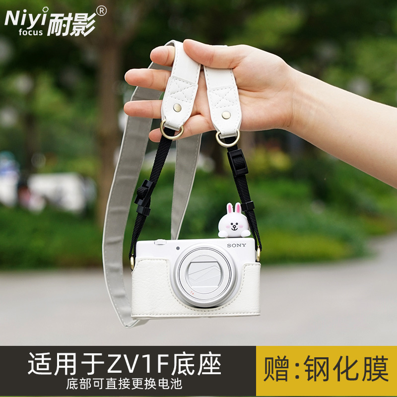 耐影皮套可拆电池 适用于索尼微单ZV1M2 ZV1F ZV1专用皮套白色豪华版复古保护套相机包配肩带底座磁吸版