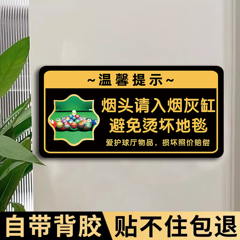台球厅提示牌台球厅用品大全台球室请勿乱扔烟头请入烟灰缸避免烫坏地毯温馨提示牌标识牌亚克力墙贴纸告示牌