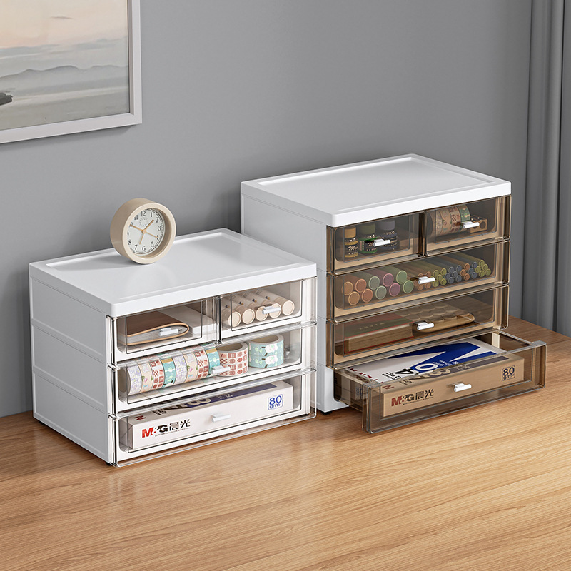 抽屉式桌面收纳盒学生书桌多 层可叠加文件整理柜化妆品收纳置物架文具用品整理架文具收纳盒多功能学生宿舍