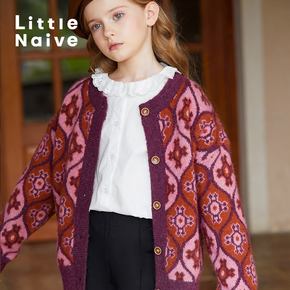 LittleNaive春秋新款女童衬衫花边领法式白色泡泡袖衬衣 中大童