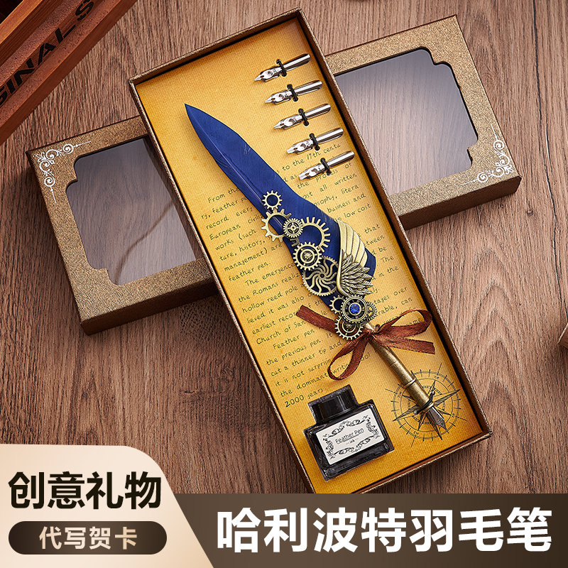 欧式复古羽毛笔钢笔文具礼盒套装手办送男生高颜值蘸水实用笔金榜题名毕业季生日礼物