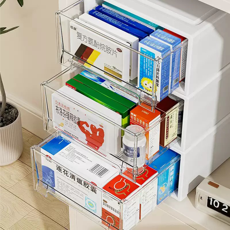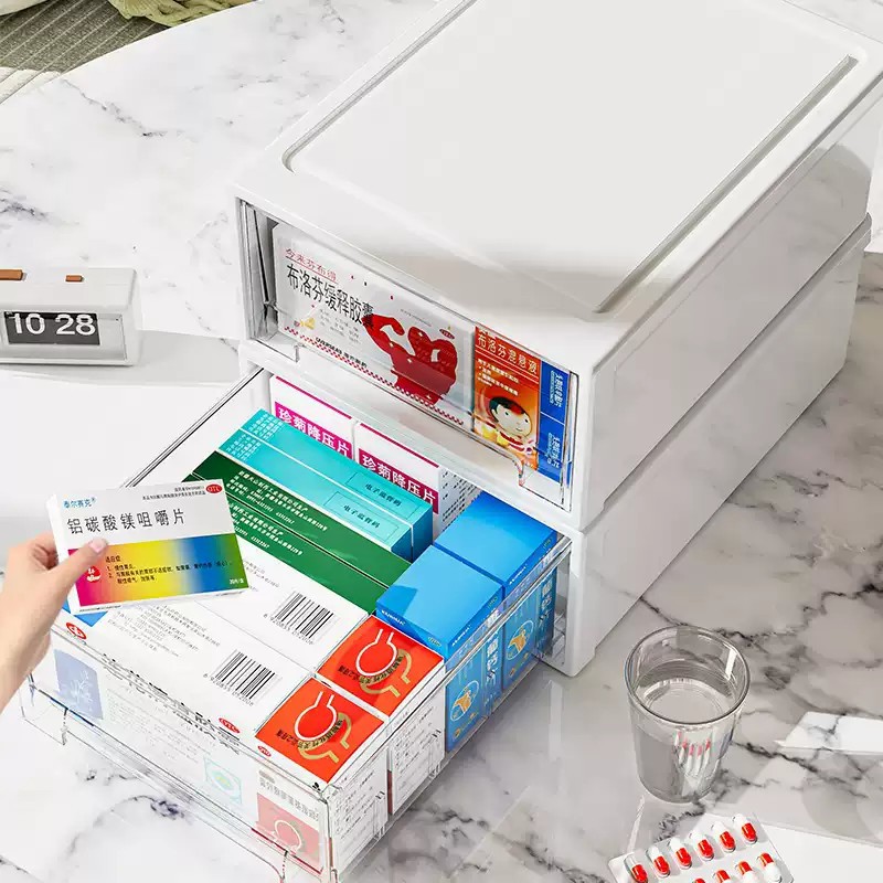 多层药箱家庭装药物收纳盒子抽屉式药品白色置物架家用透明医药箱