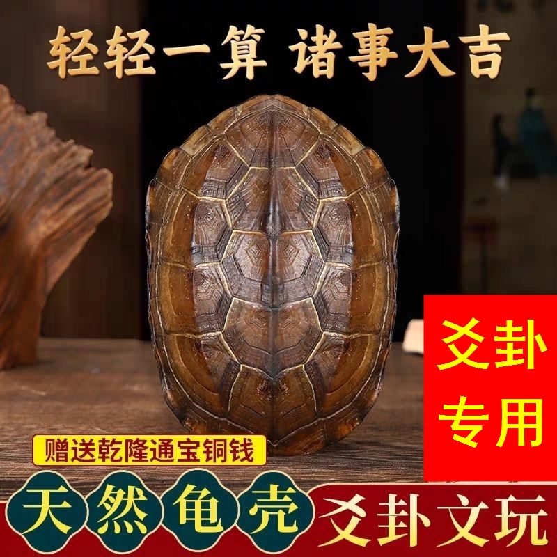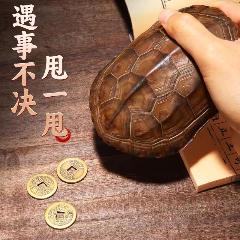 卦卜铜钱龟壳老式一整套金钱摆件干净龟壳风水摇铜钱摇卦龟甲完整
