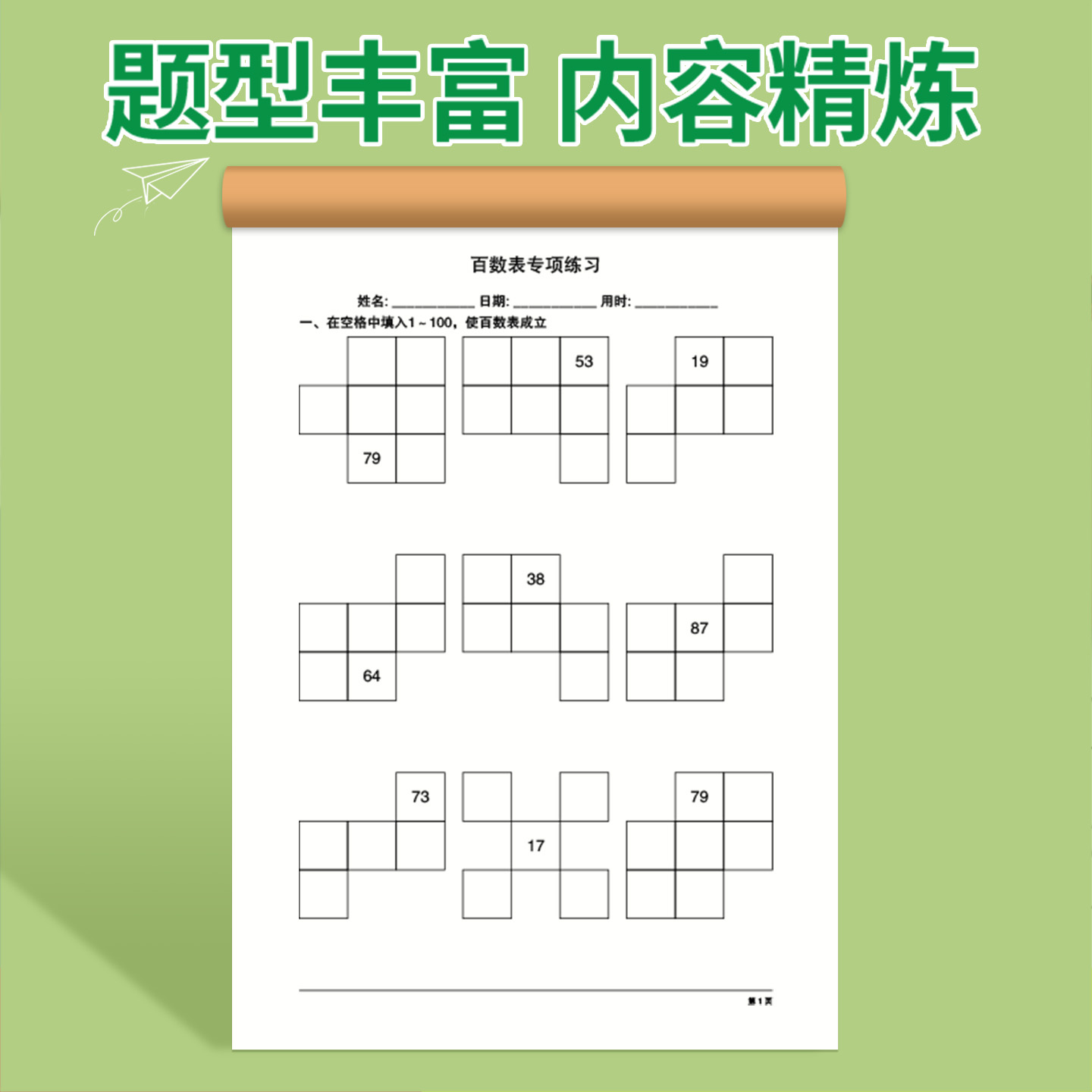 数学百数练习表专项练习小学一年级下册趣味数学1-100内找规律填数字数感训练专项练习题幼儿园教具计算题本