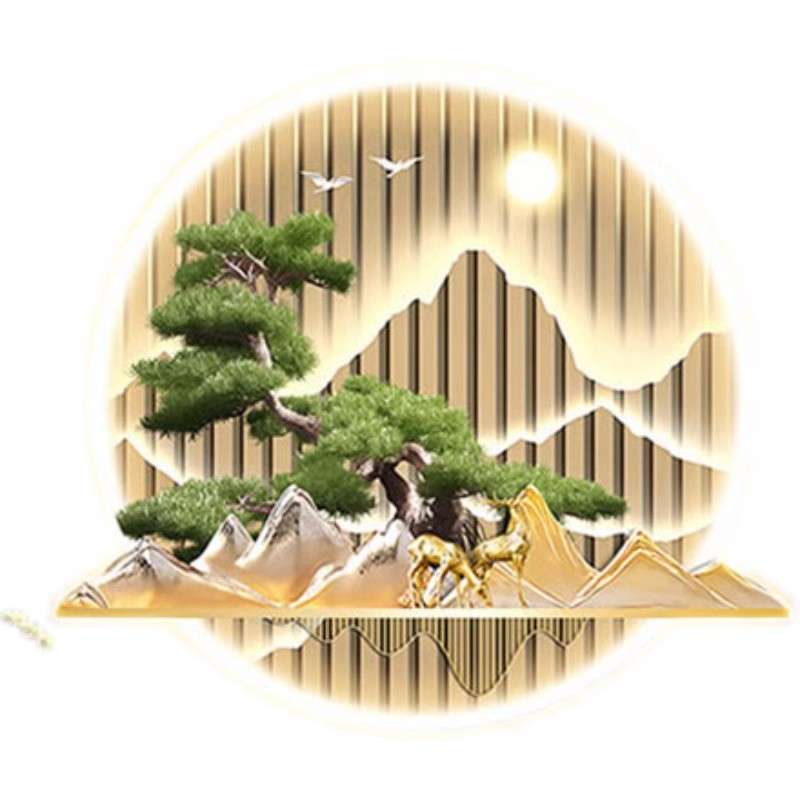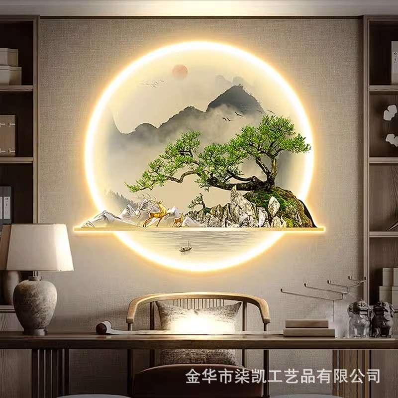 入户玄关装饰画新中式山水迎客松走廊发光壁画轻奢鹿带LED灯挂画