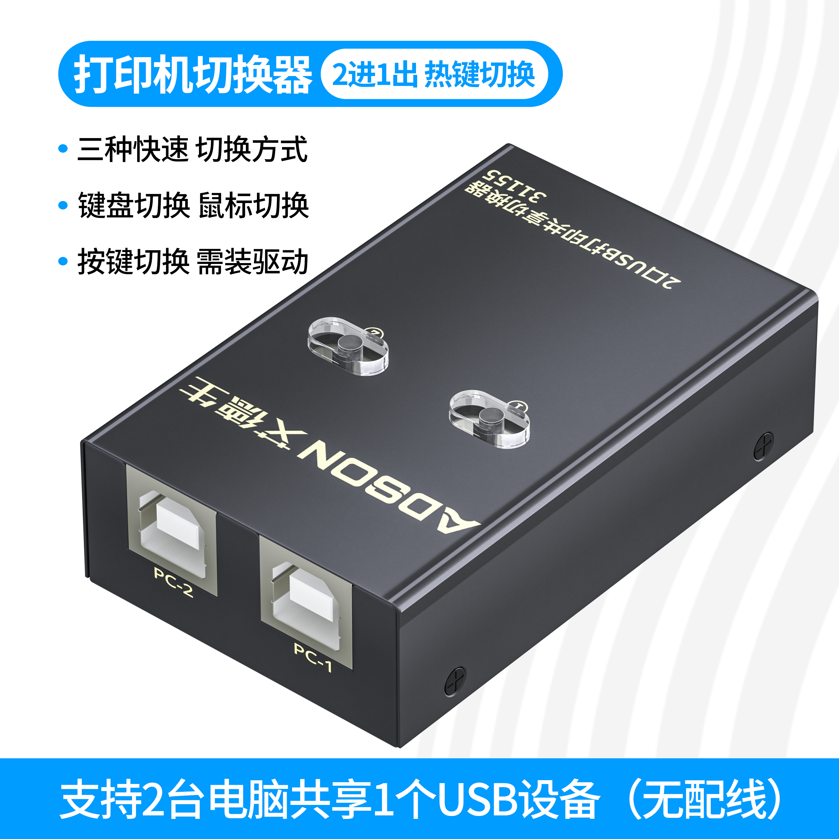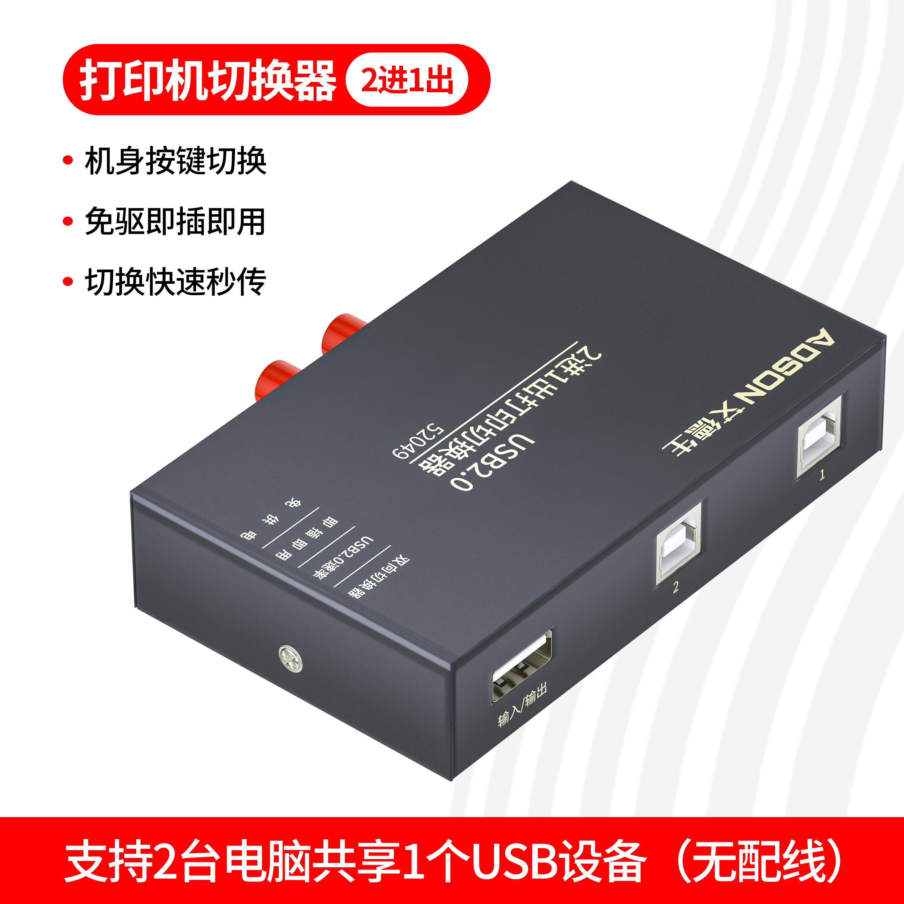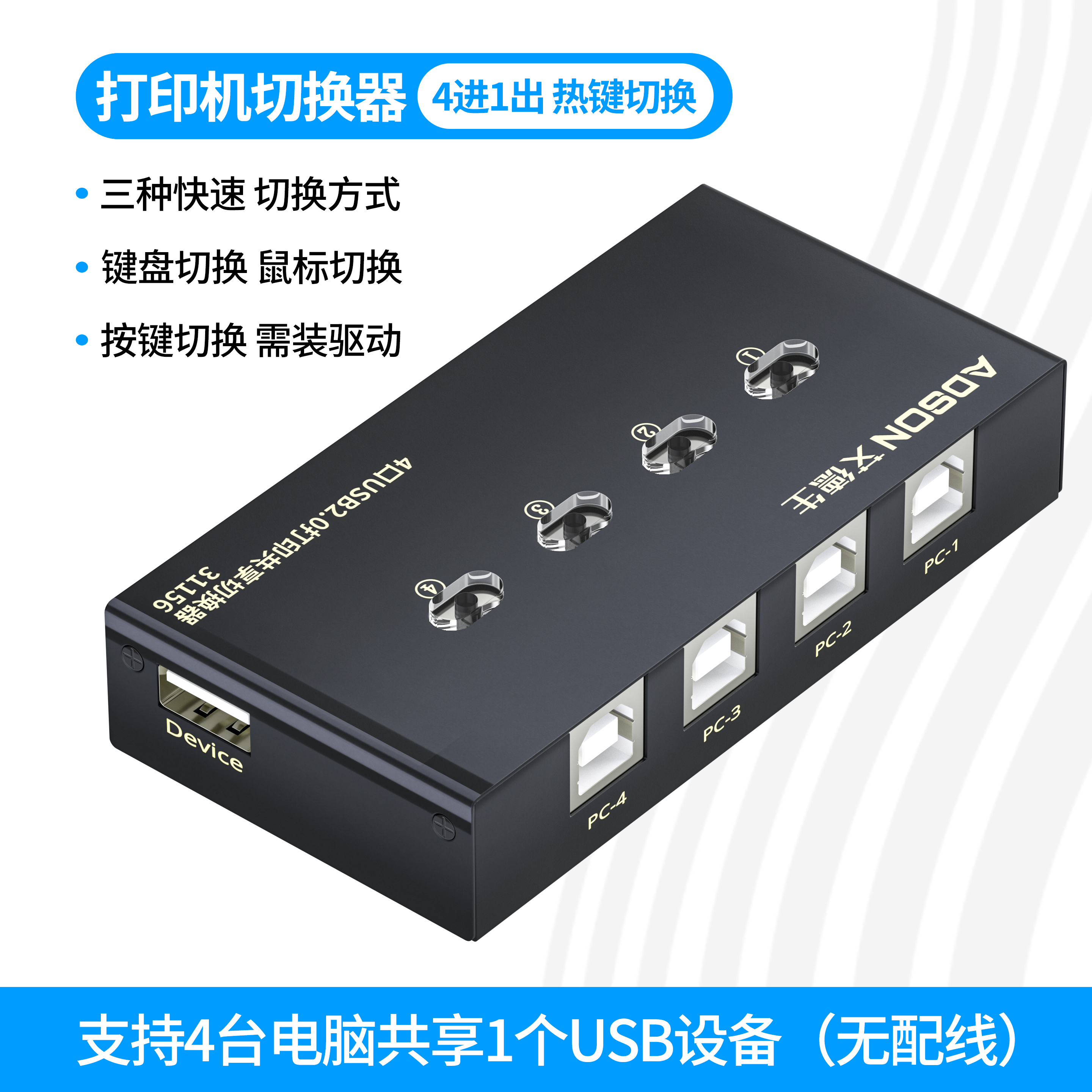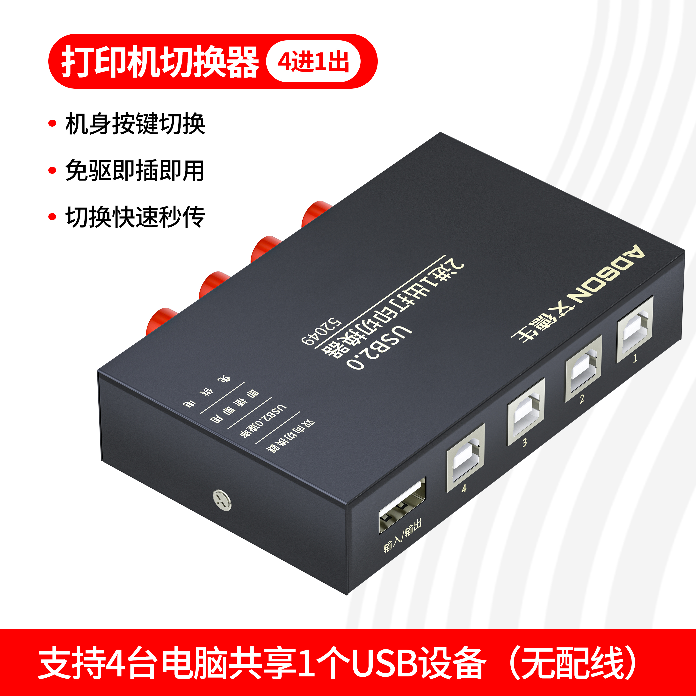 艾德生 打印机共享器一拖二一拖四自动免切换数据线USB分线器转换器连接一拖四一拖三四台主机共用一个打印机