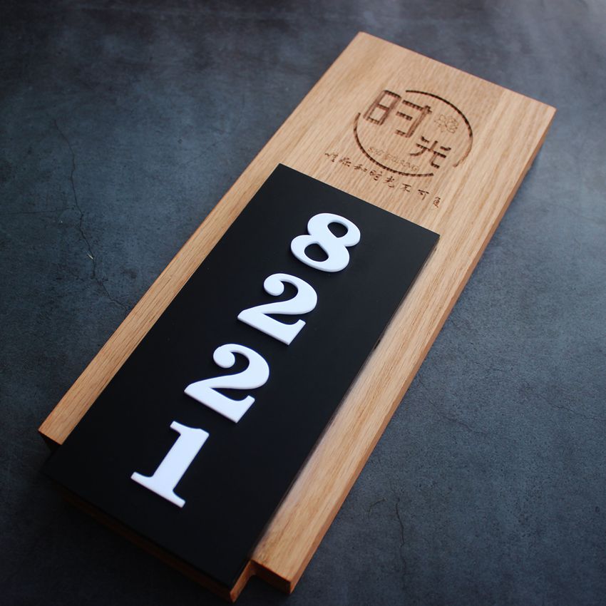 酒店发光门牌民宿包厢房间发光门牌定制仿古中式门牌木质门牌定制