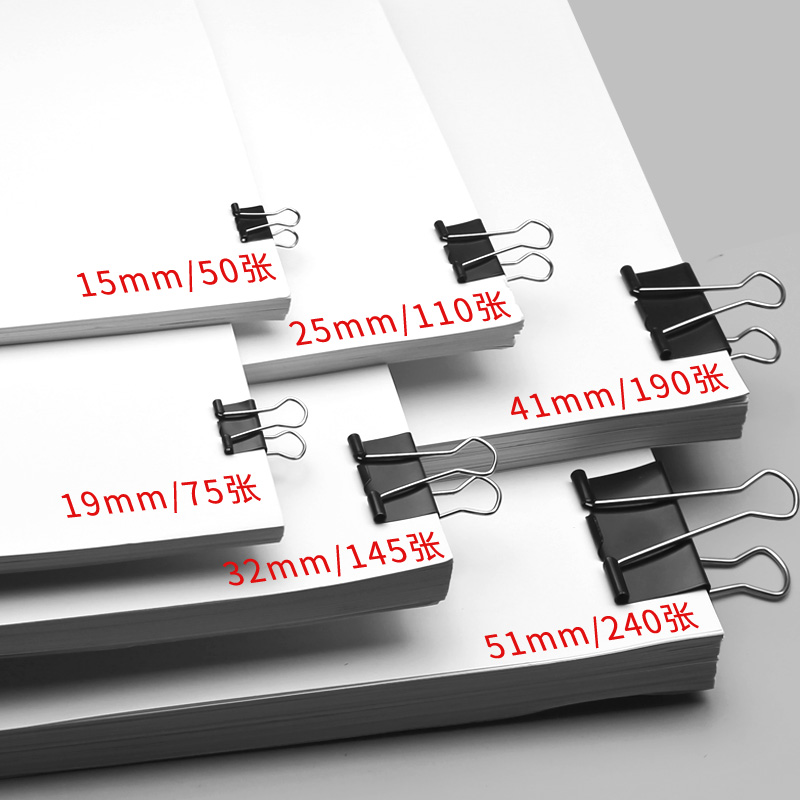 加厚黑色长尾夹小号铁夹子混合装票据夹学生用强力固定文件资料试卷多功能凤尾夹办公文具用品金属燕尾夹