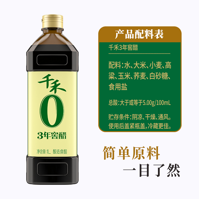 千禾零添加3年窖醋1L家用陈醋酿造食用醋蘸料凉拌菜饺子佐餐调味