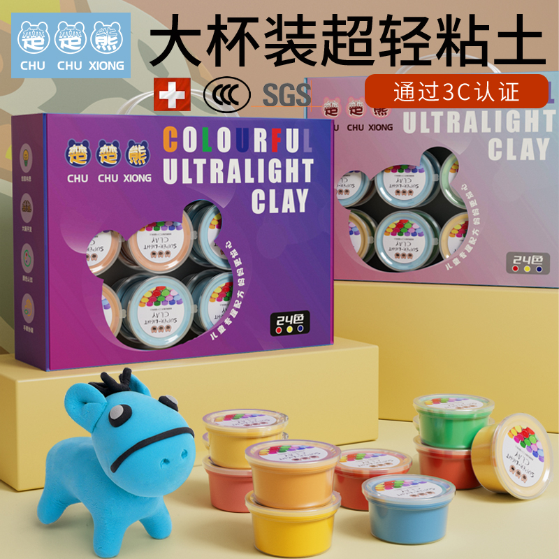 超轻粘土24色套装儿童无毒彩泥太空泥橡皮泥大包装100g纸黏土玩具