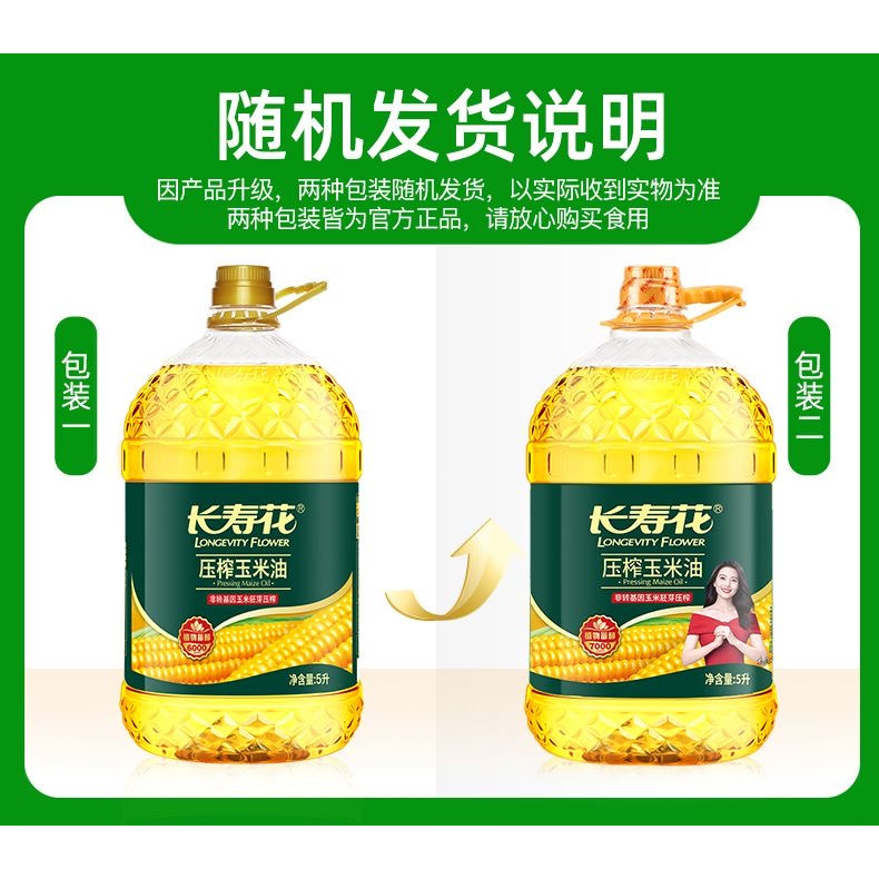 长寿花压榨玉米油5L物理压榨一级非转基因玉米油充氮保鲜正品包邮