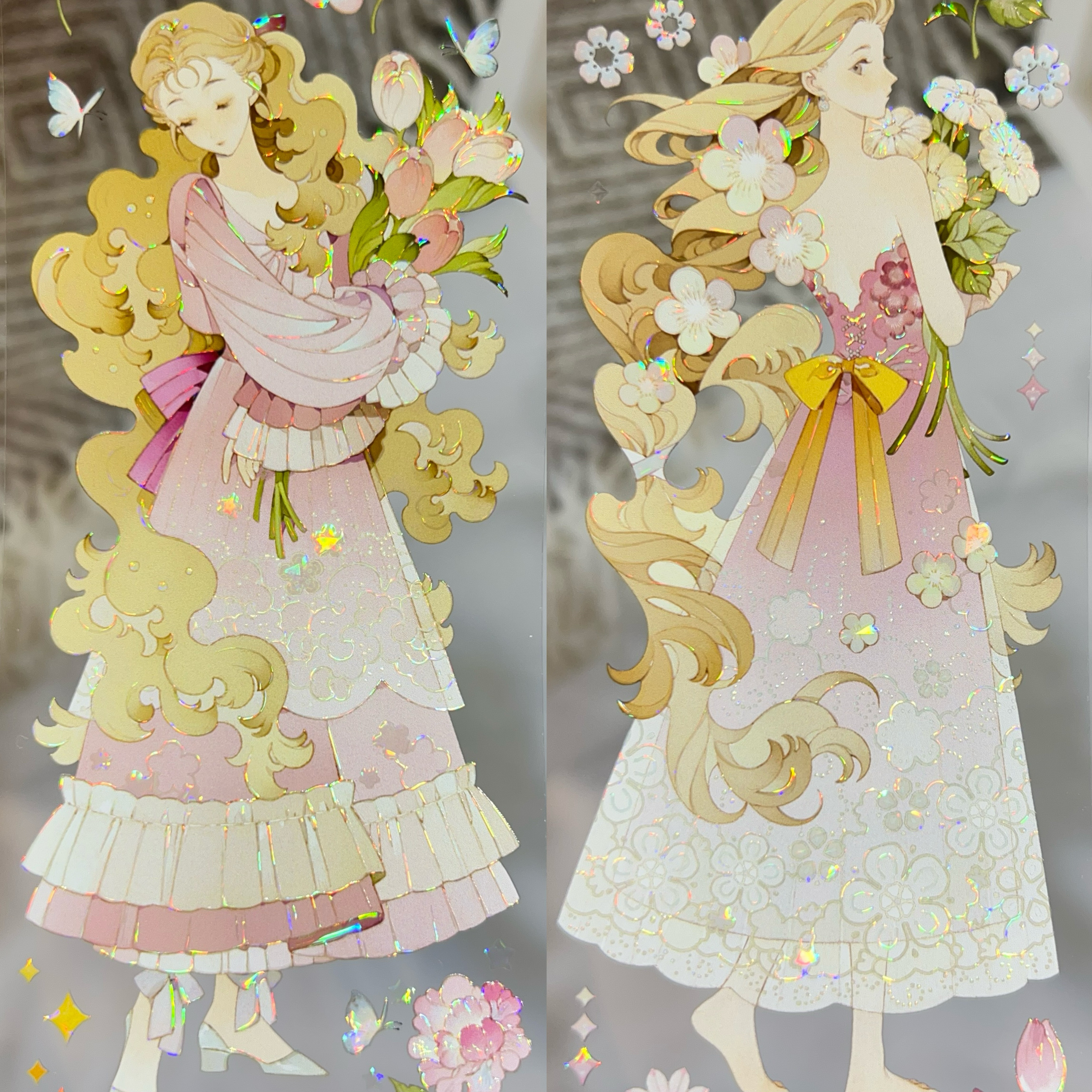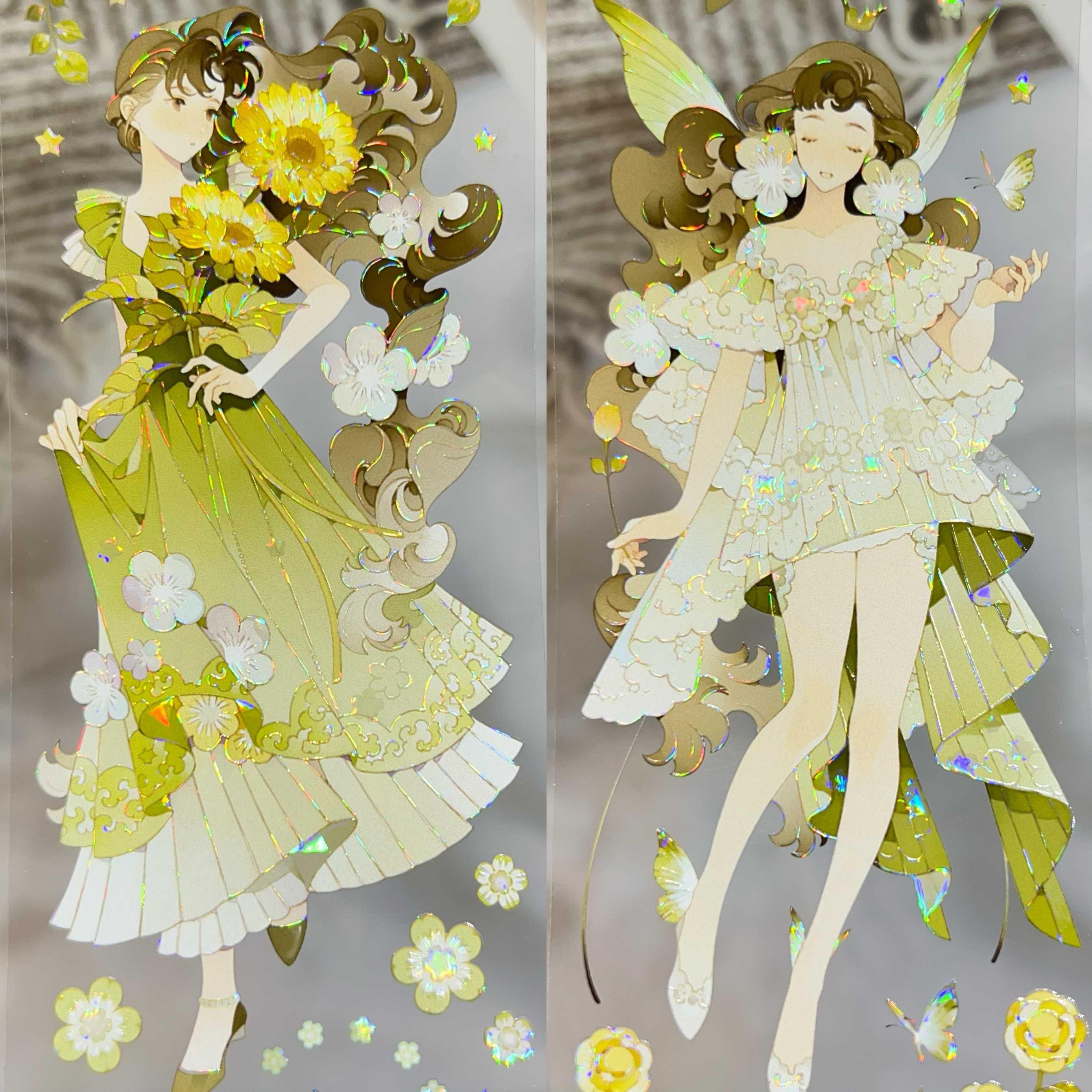 迷雾森林分装手账胶带晨曦微露花朝轻盈豫太太人物女流麻咕卡拼贴