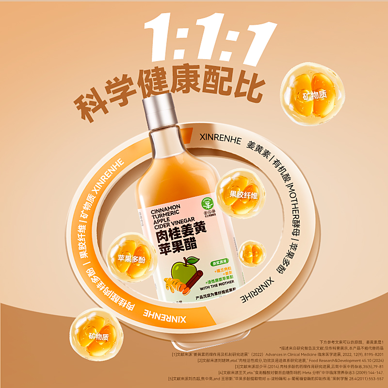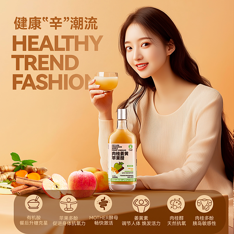 肉桂姜黄原浆苹果醋无糖抗浓缩炎0添加0脂肪0热量生酮饮料