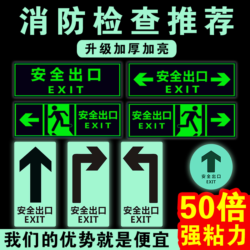 箭头夜光安全出口指示牌楼梯消防疏散通道小心台阶地滑地贴提示牌