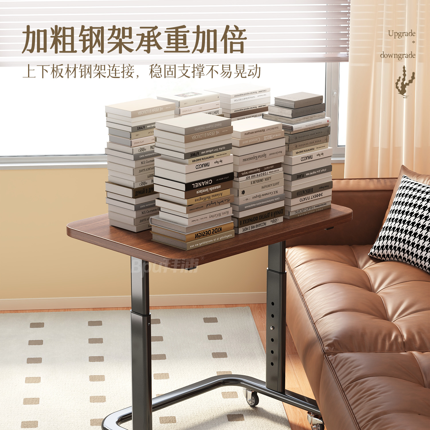拜浦可移动升降床边桌阅读书桌床上学习桌客厅卧室电脑桌儿童书桌沙发边桌写字桌可调节升降桌懒人电脑办公桌