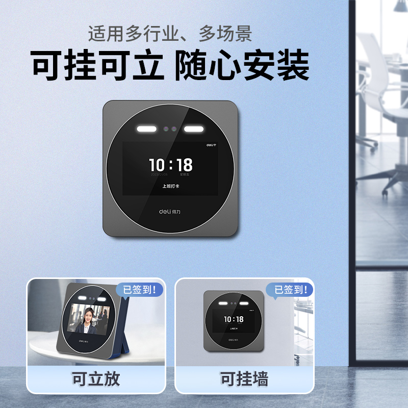 得力考勤机D7E云考勤智能定位办公上下班打卡机多人同时人脸考勤机WiFi打卡考勤机人脸识别考勤机刷脸考勤机