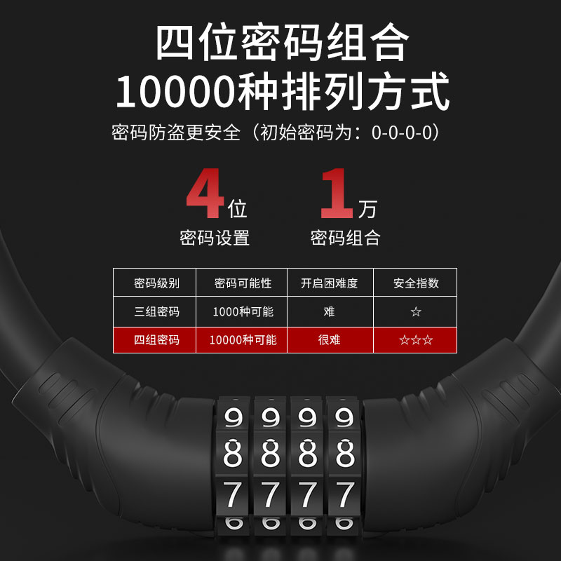 密码锁挂锁钢丝户外大门长锁防盗车筐门锁柜子锁子锁头电动车头盔