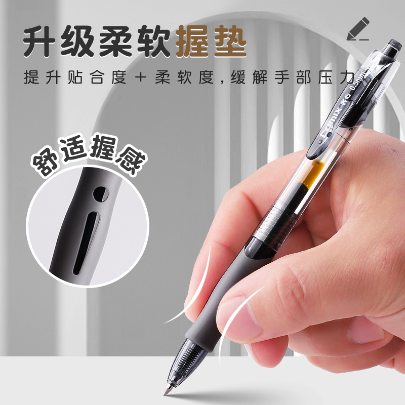 ST刷题笔高颜值按动中性笔圆珠笔黑色水笔小学生专用考试0.5速干碳素笔水性黑笔按压式做笔记签字笔非按斤卖