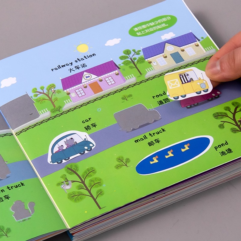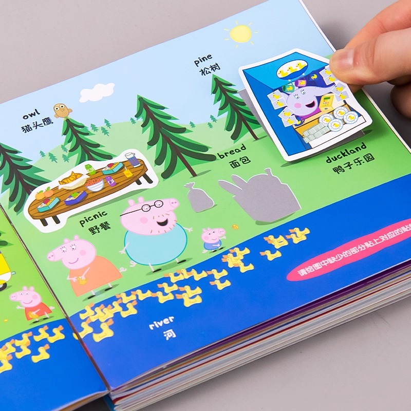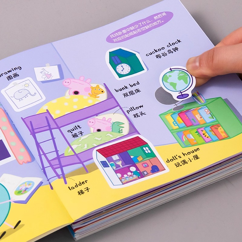 小猪佩奇专注力场景贴贴乐儿童贴纸3-6岁男女孩粘贴宝宝益智玩具粘贴画扩大3-6岁孩子单词量提升专注力观察力240+英语单词贴纸书