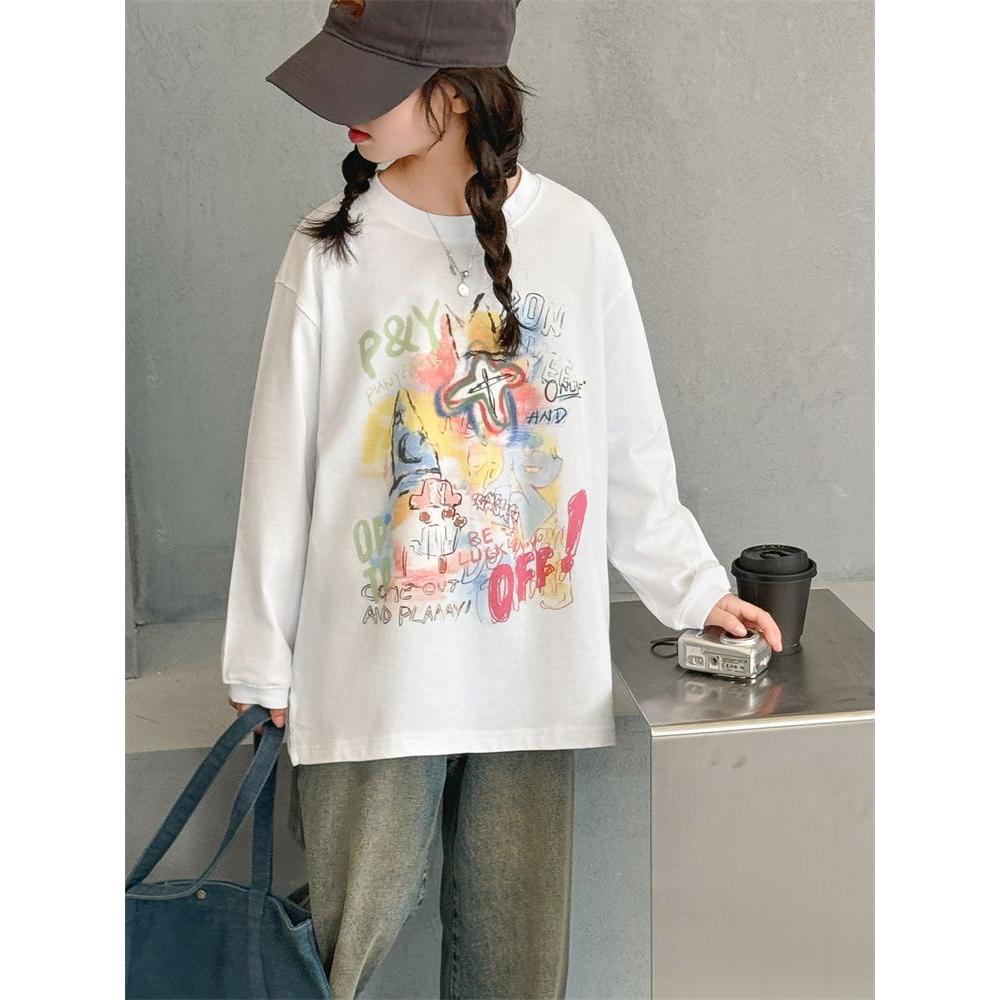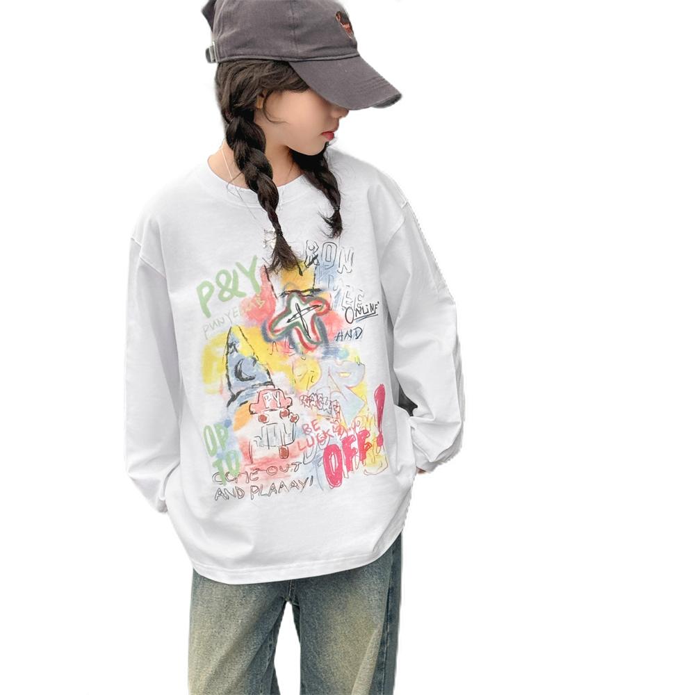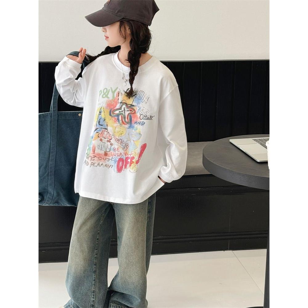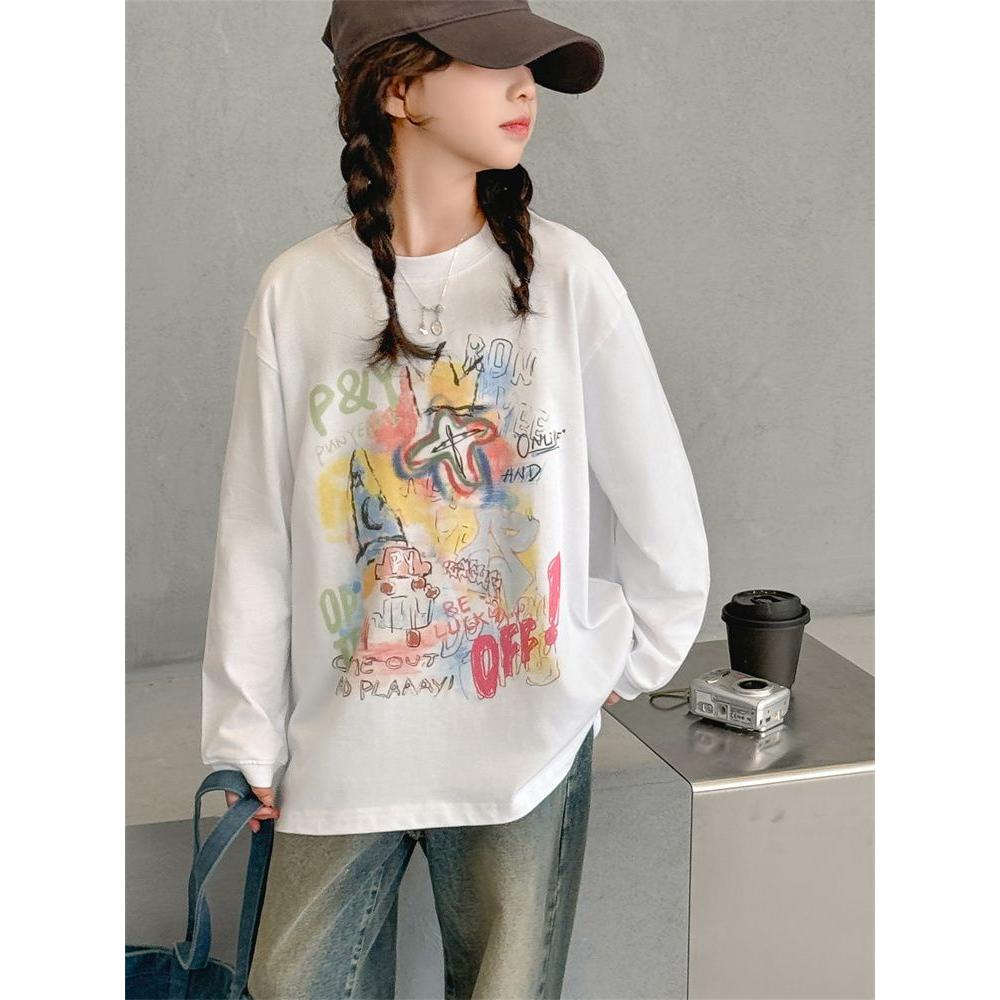 女童长袖T恤春秋装2025新款中大童韩版洋气上衣女孩初中生打底衫