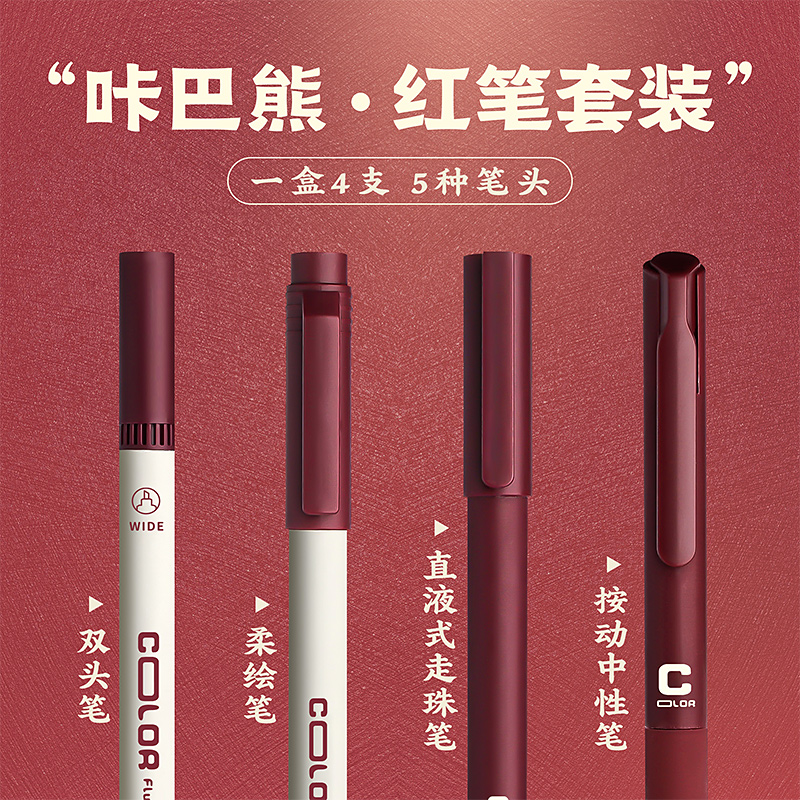红笔学生专用速干红色中性笔老师批改作业按动水笔粗头柔绘笔直液式刷题笔彩色笔套装复古圆珠签字勃艮第暗红