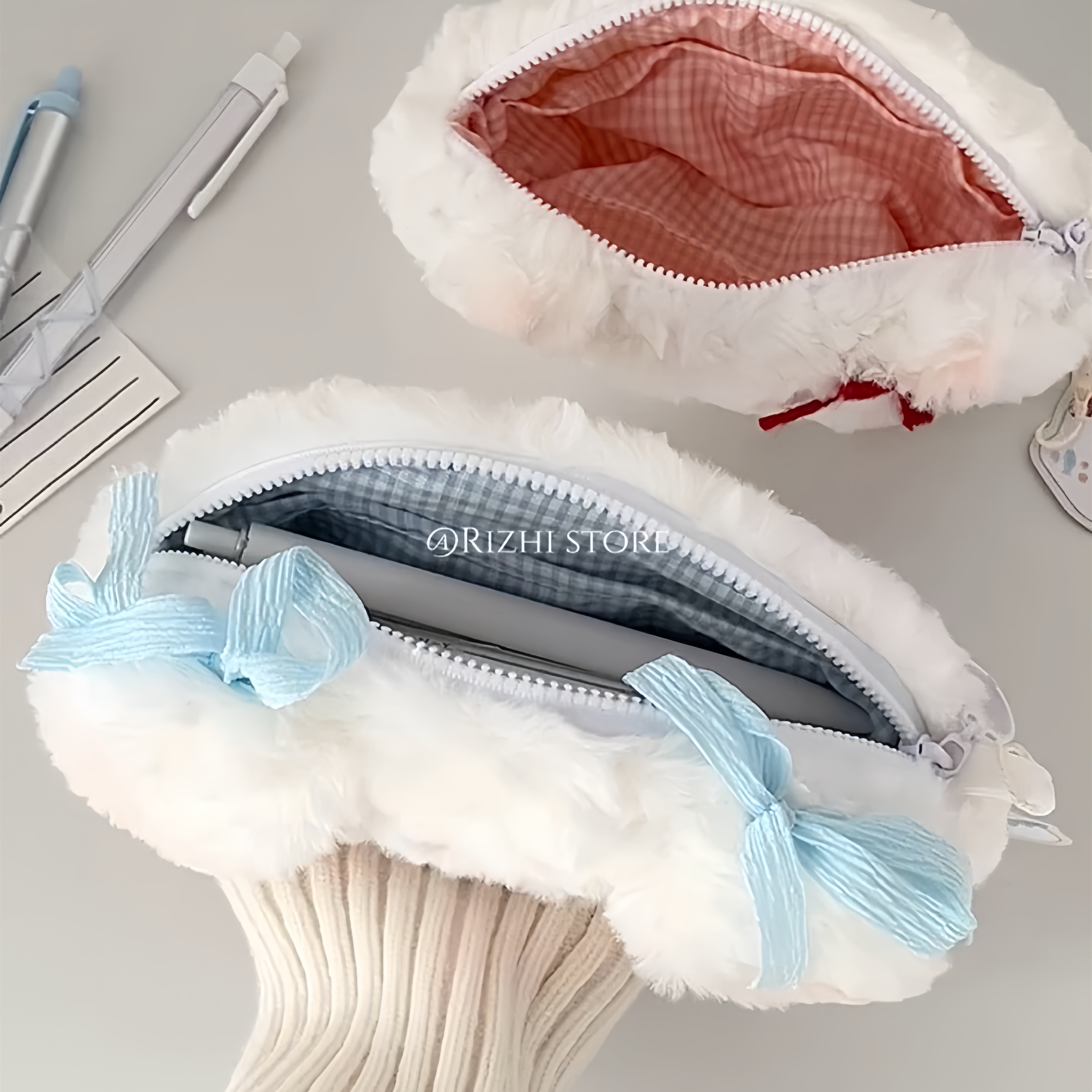 可爱软萌毛绒小动物笔袋高颜值ins风学生大容量铅笔盒文具收纳包