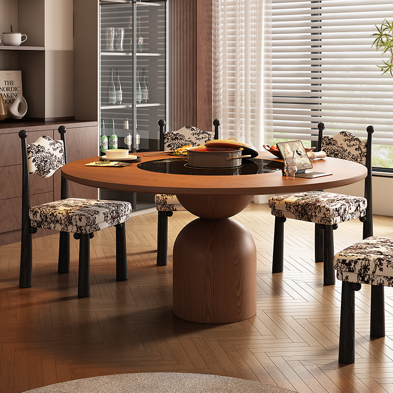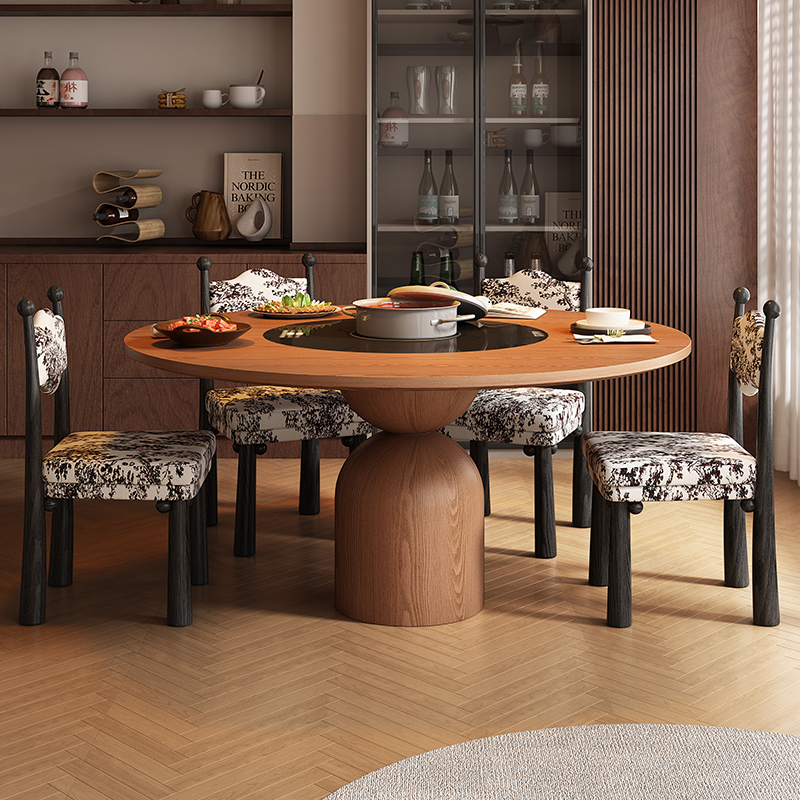 宫殿威仪圆形吃饭桌家用10人位实木餐桌椅组合大圆加转盘中古圆桌